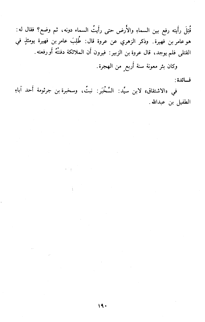 هو عامر بن فهيرة. وذكر الزهري عن عروة قال: طلب عامر بن فهيرة يومئذ في القتلى فلم يوجد، قال عروة بن الزبير: فيرون أن الملائكة دفنته أو رفعته.