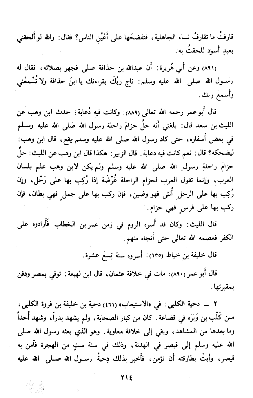 : في «الاستيعاب» (461) دحية بن خليفة بن فروة الكلبي، من كلب بن وبره في قضاعة. كان من كبار الصحابة، ولم يشهد بدرا، وشهد أحدا وما بعدها من المشاهد، وبقي إلى خلافة معاوية. وهو الذي بعثه رسول الله صلّى الله عليه وسلم إلى قيصر في الهدنة، وذلك في سنة ست من الهجرة فآمن به قيصر، وأبت بطارقته أن تؤمن، فأخبر بذلك دحية رسول الله صلّى الله عليه