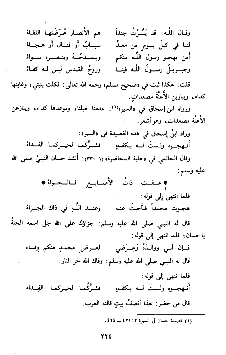 (1) قصيدة حسان في السيرة 2: 421- 424.