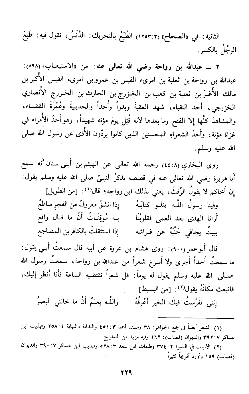 (2) الأبيات في السيرة 2: 374 وطبقات ابن سعد 3: 528 وتهذيب ابن عساكر 7: 390 والديوان (قصاب) 159 وأورد تخريجا كثيرا.
