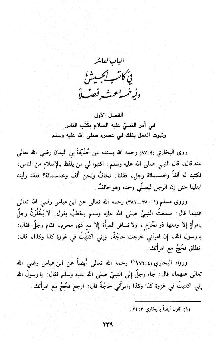 الفصل الأول في أمر النبيّ عليه السلام بكتب الناس وثبوت العمل بذلك في عصره صلّى الله عليه وسلم