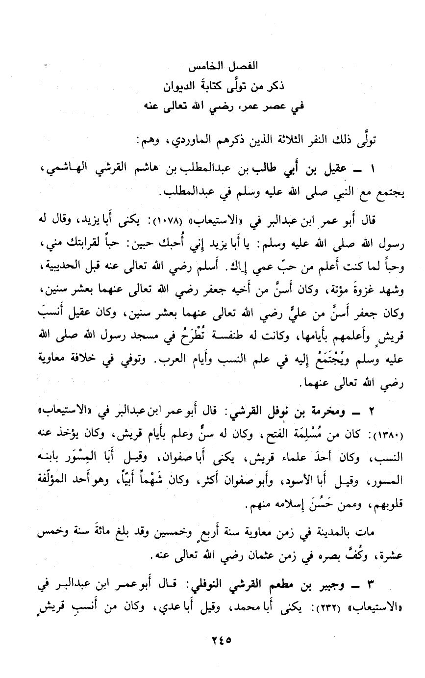 الفصل الخامس ذكر من تولّى كتابة الديوان في عصر عمر