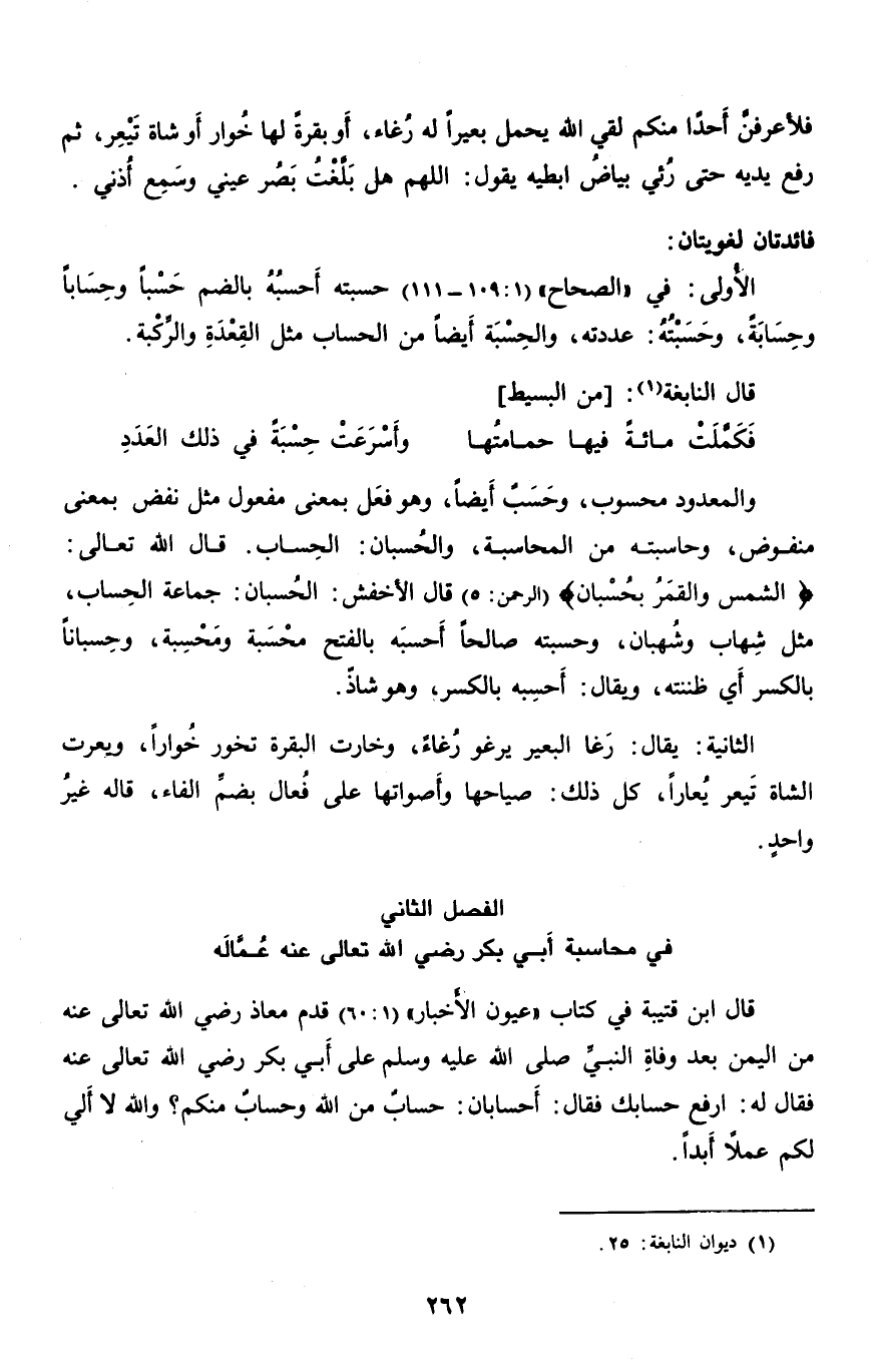 الفصل الثاني في محاسبة أبي بكر رضي الله تعالى عنه عمّاله