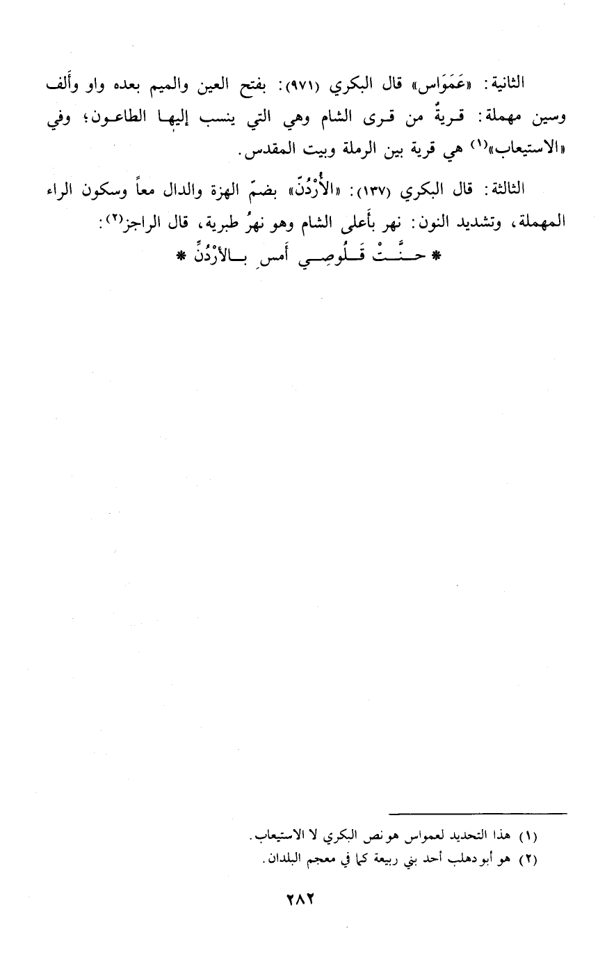 (1) هذا التحديد لعمواس هو نص البكري لا الاستيعاب.