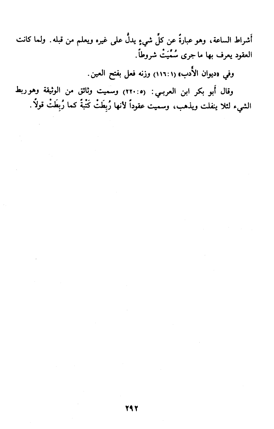 أشراط الساعة، وهو عبارة عن كلّ شيء يدلّ على غيره ويعلم من قبله. ولما كانت العقود يعرف بها ما جرى سمّيت شروطا.