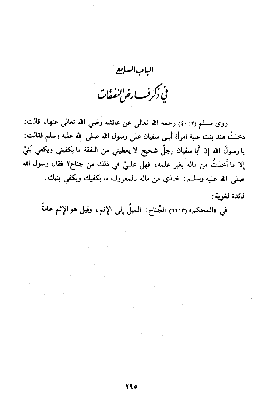 يا رسول الله إن أبا سفيان رجل شحيح لا يعطيني من النفقة ما يكفيني ويكفي بنيّ إلا ما أخذت من ماله بغير علمه، فهل عليّ في ذلك من جناح؟ فقال رسول الله صلى الله عليه وسلم: خذي من ماله بالمعروف ما يكفيك ويكفي بنيك.