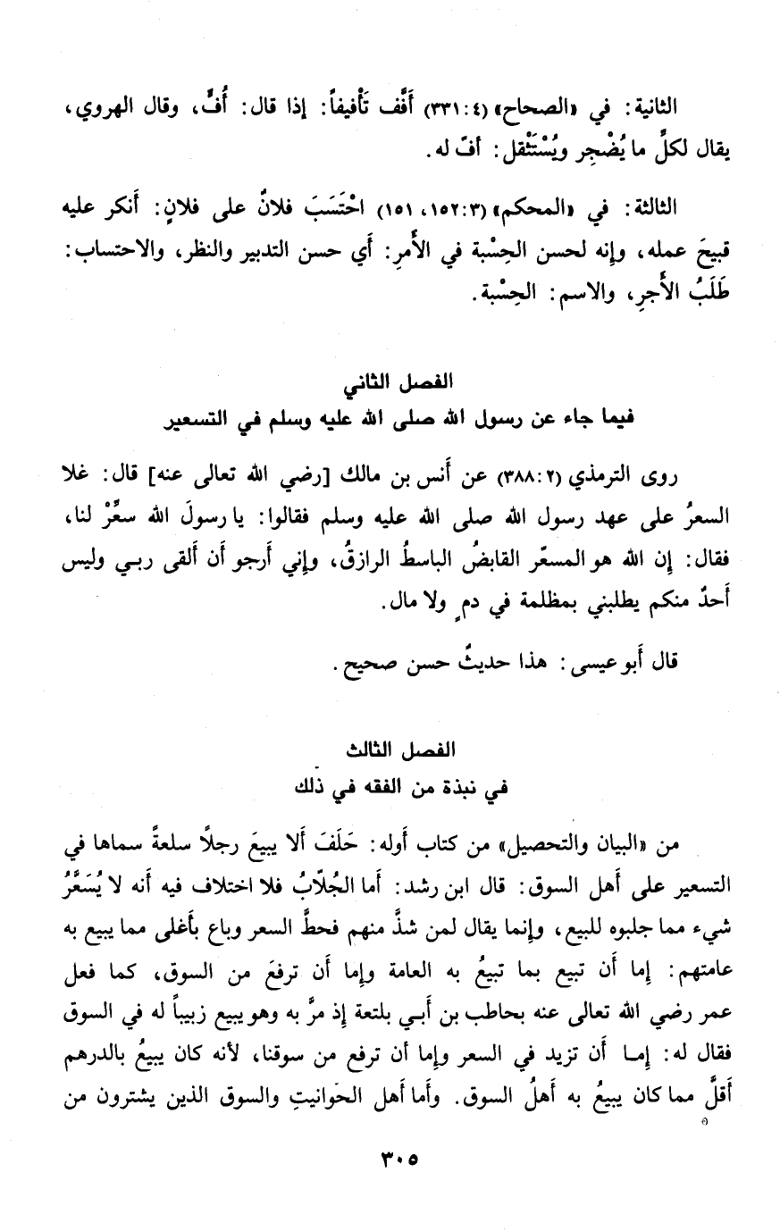 الفصل الثاني فيما جاء عن رسول الله صلّى الله عليه وسلم في التسعير