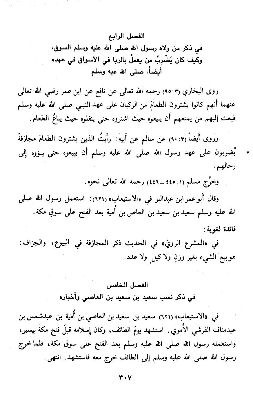 الفصل الرابع في ذكر من ولاه رسول الله صلّى الله عليه وسلم السوق، وكيف كان يضرب من يعمل بالربا في الأسواق في عهده أيضا، صلّى الله عليه وسلم