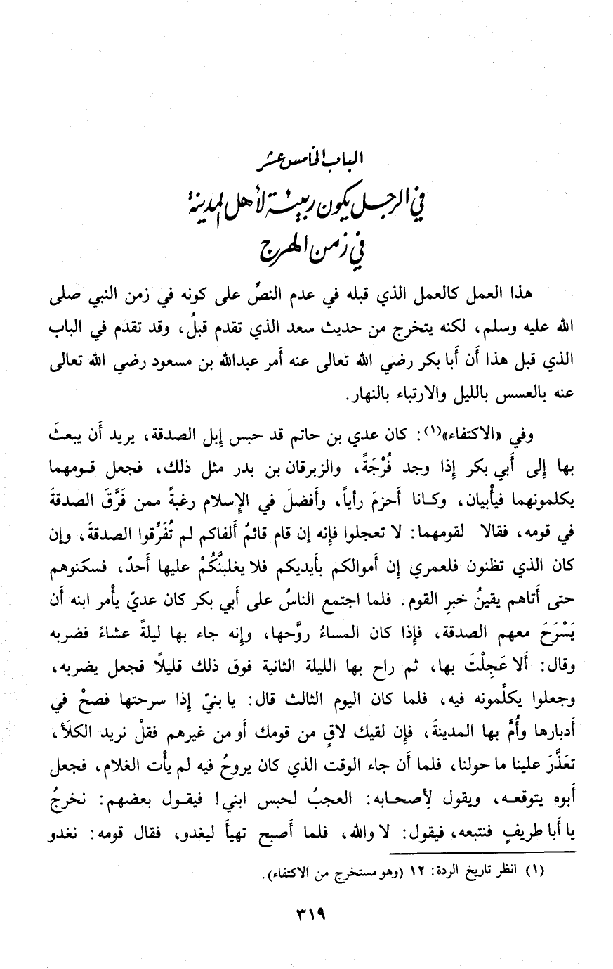 الباب الخامس عشر في الرجل يكون ربيئة لأهل المدينة في زمن الهرج