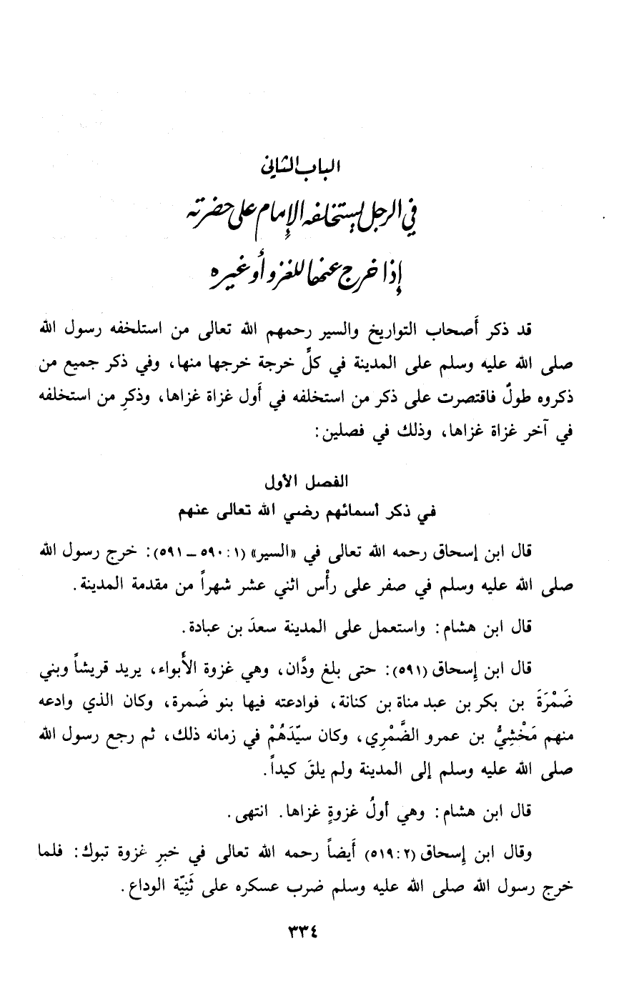 الباب الثاني في الرجل يستخلفه الإمام على حضرته إذا خرج عنها للغزو أو غيره
