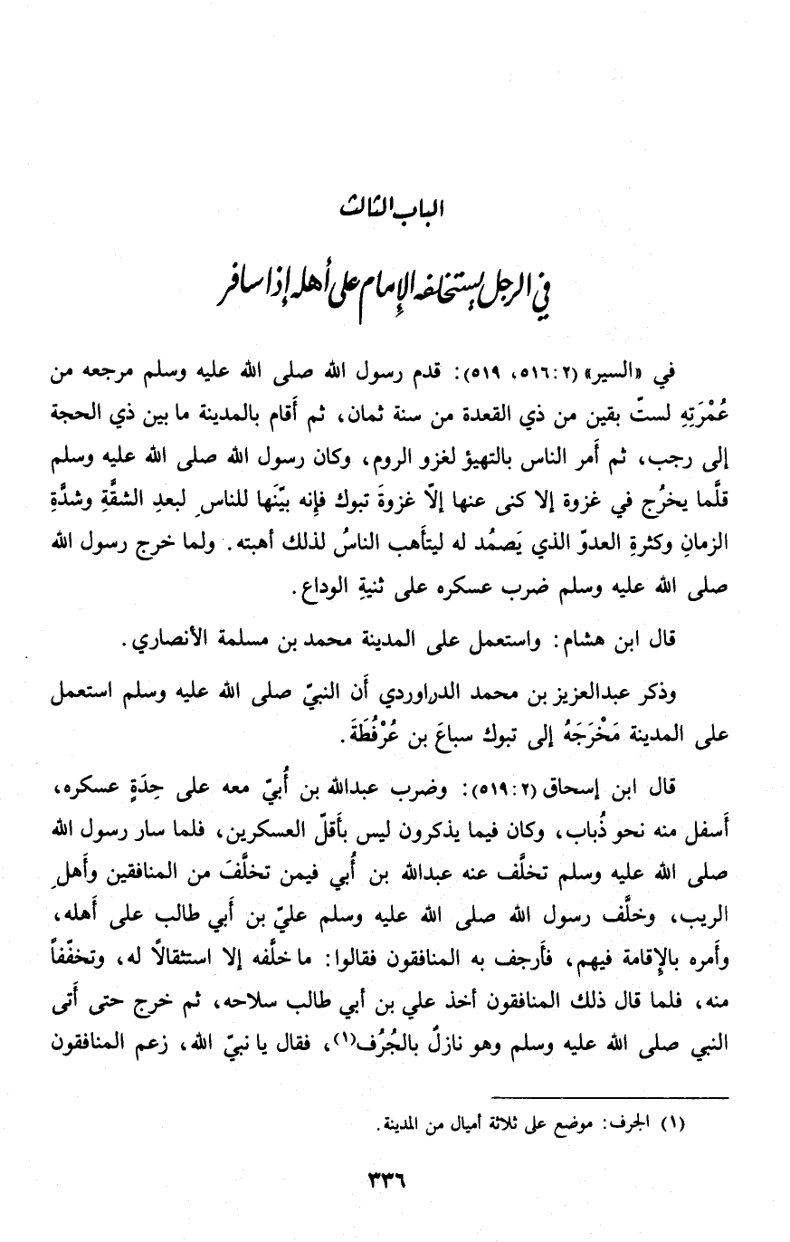 الباب الثالث في الرجل يستخلفه الإمام على أهله إذا سافر