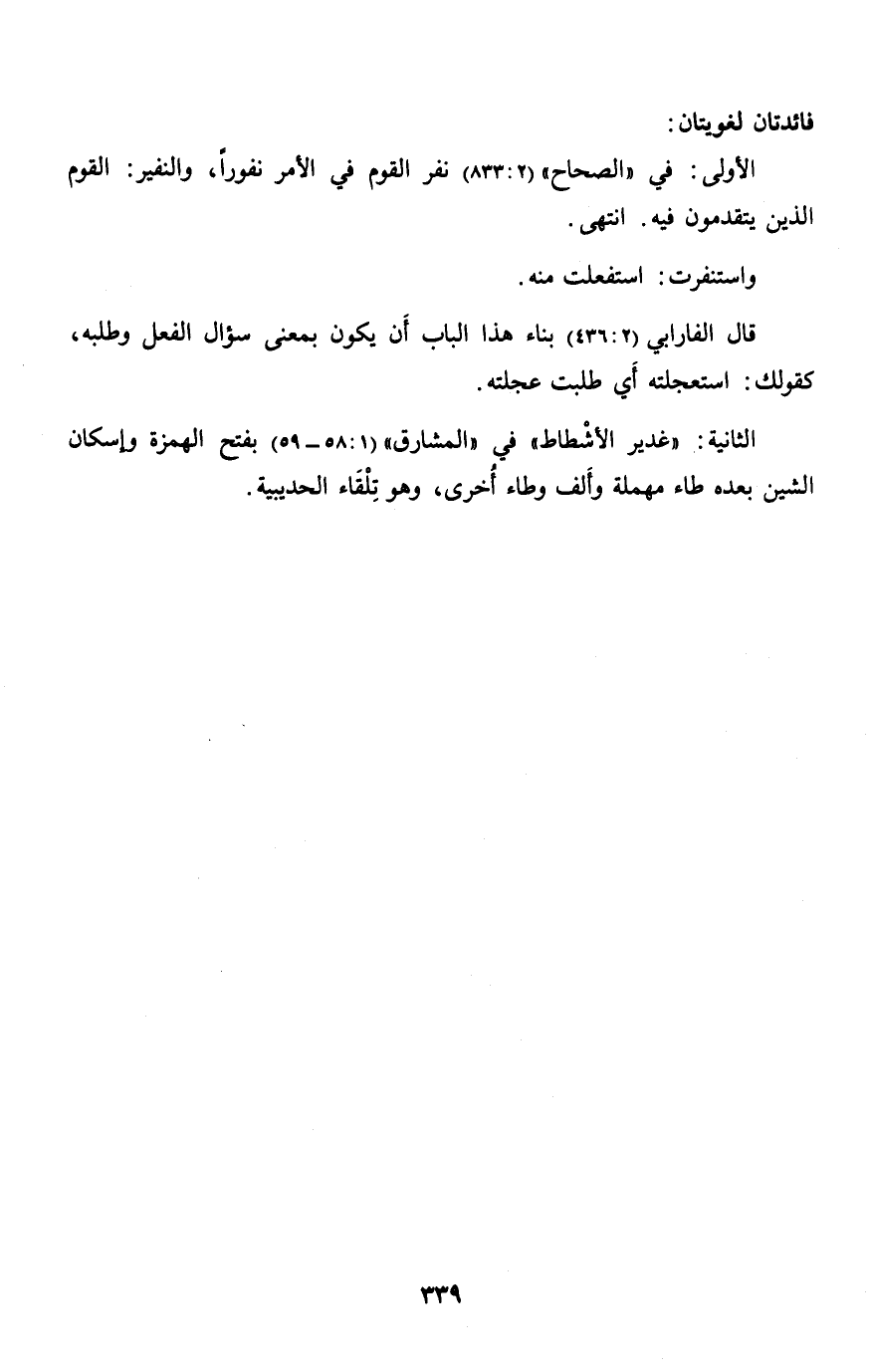 الأولى: في «الصحاح» (2: 833) نفر القوم في الأمر نفورا، والنفير: القوم الذين يتقدمون فيه. انتهى.