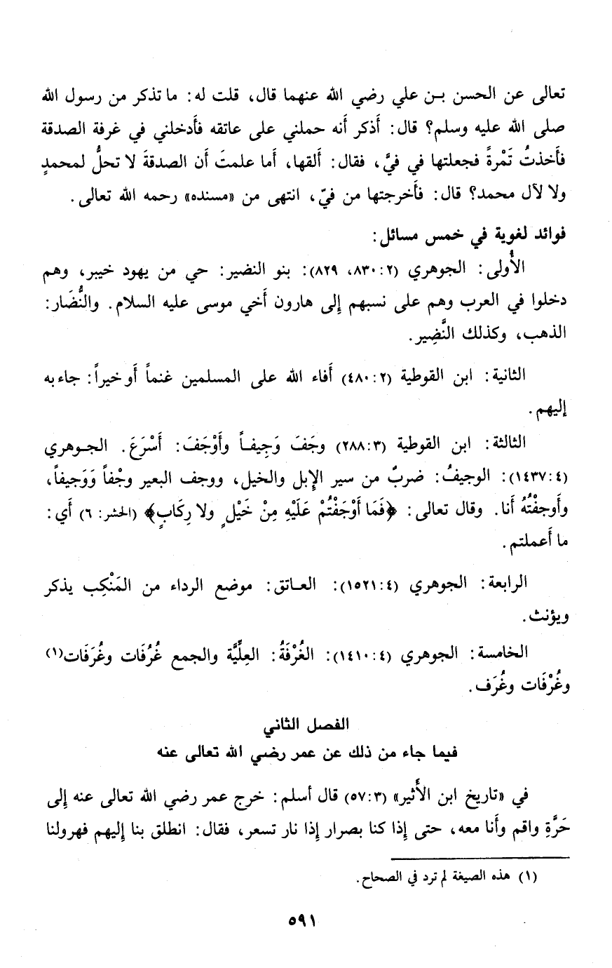 الفصل الثاني فيما جاء من ذلك عن عمر رضي الله تعالى عنه