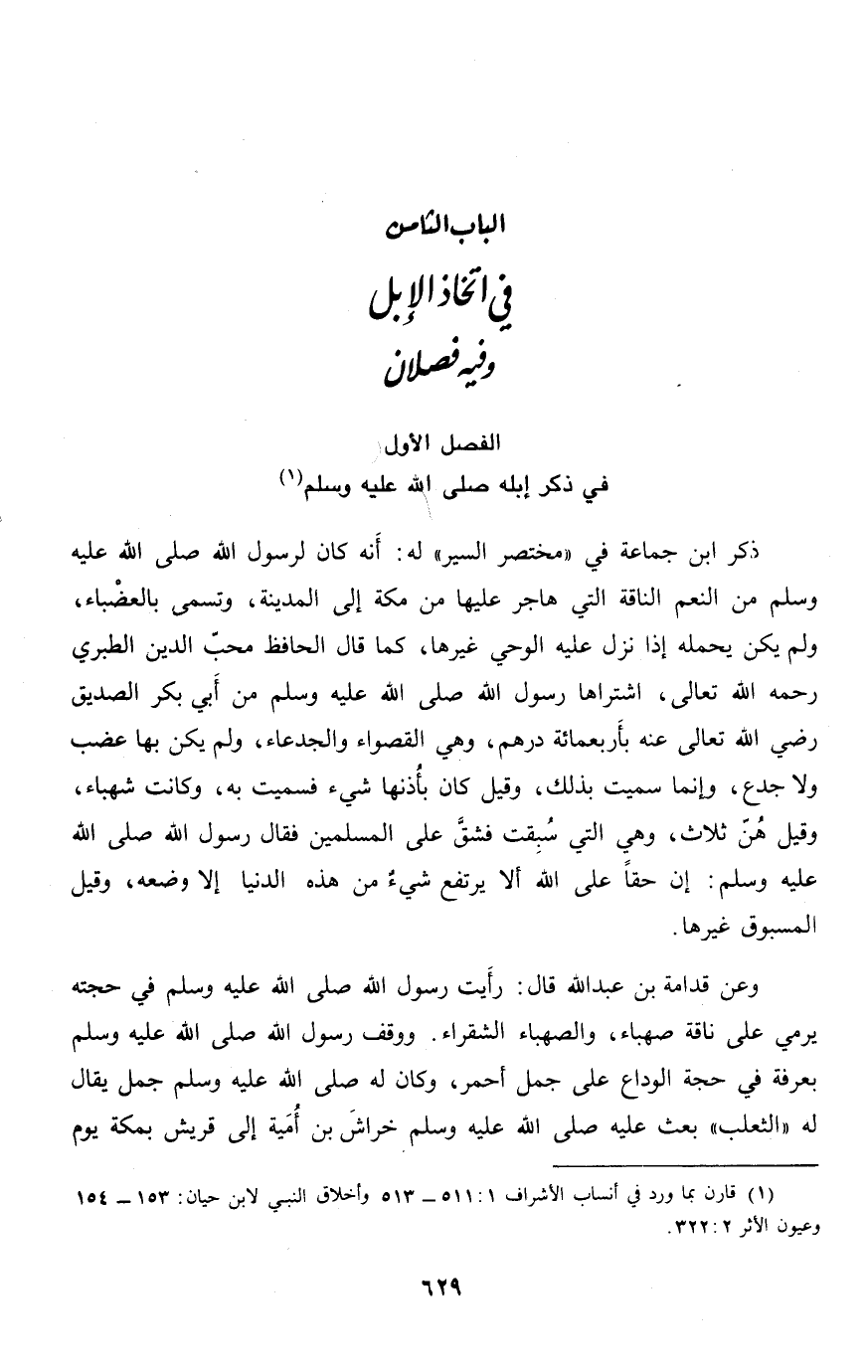 الفصل الأول في ذكر إبله صلّى الله عليه وسلم «1»