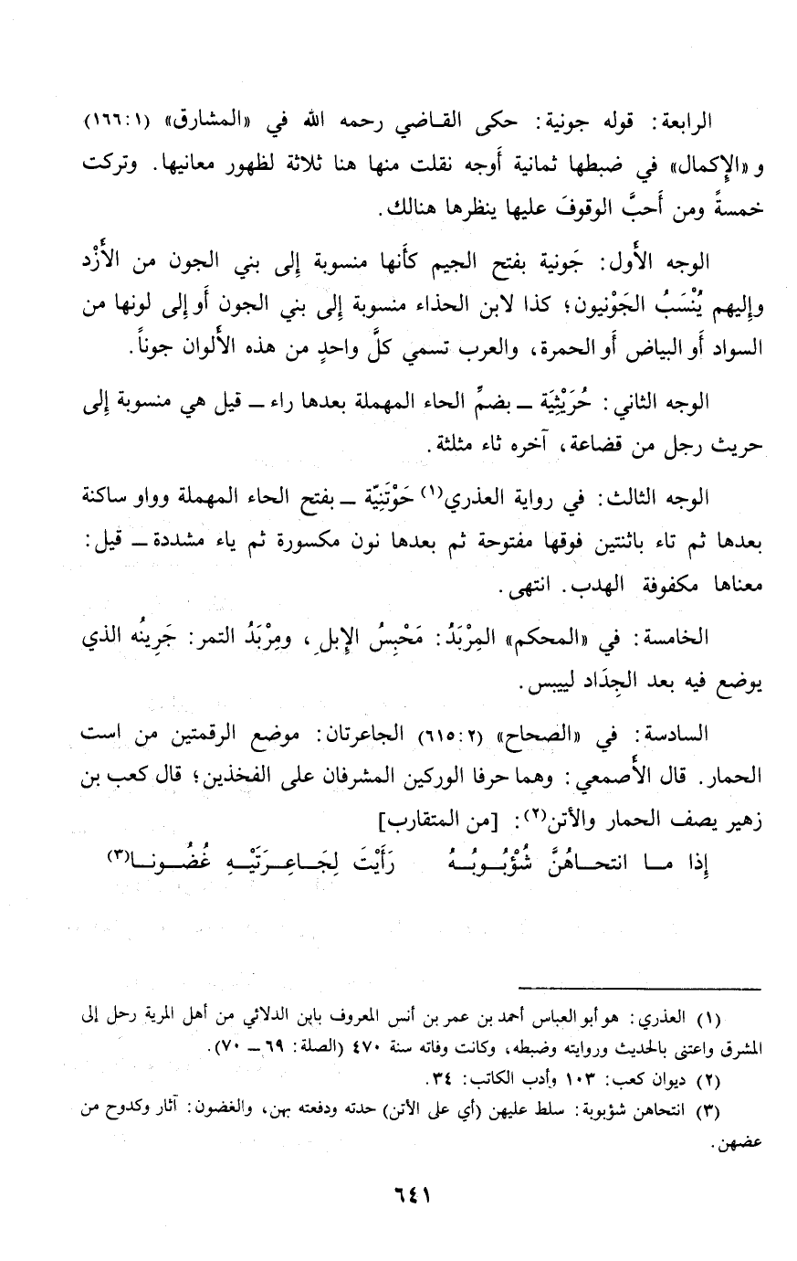 الرابعة: قوله جونية: حكى القاضي رحمه الله في «المشارق» (1: 166) و «الإكمال» في ضبطها ثمانية أوجه نقلت منها هنا ثلاثة لظهور معانيها. وتركت خمسة ومن أحبّ الوقوف عليها ينظرها هنالك.