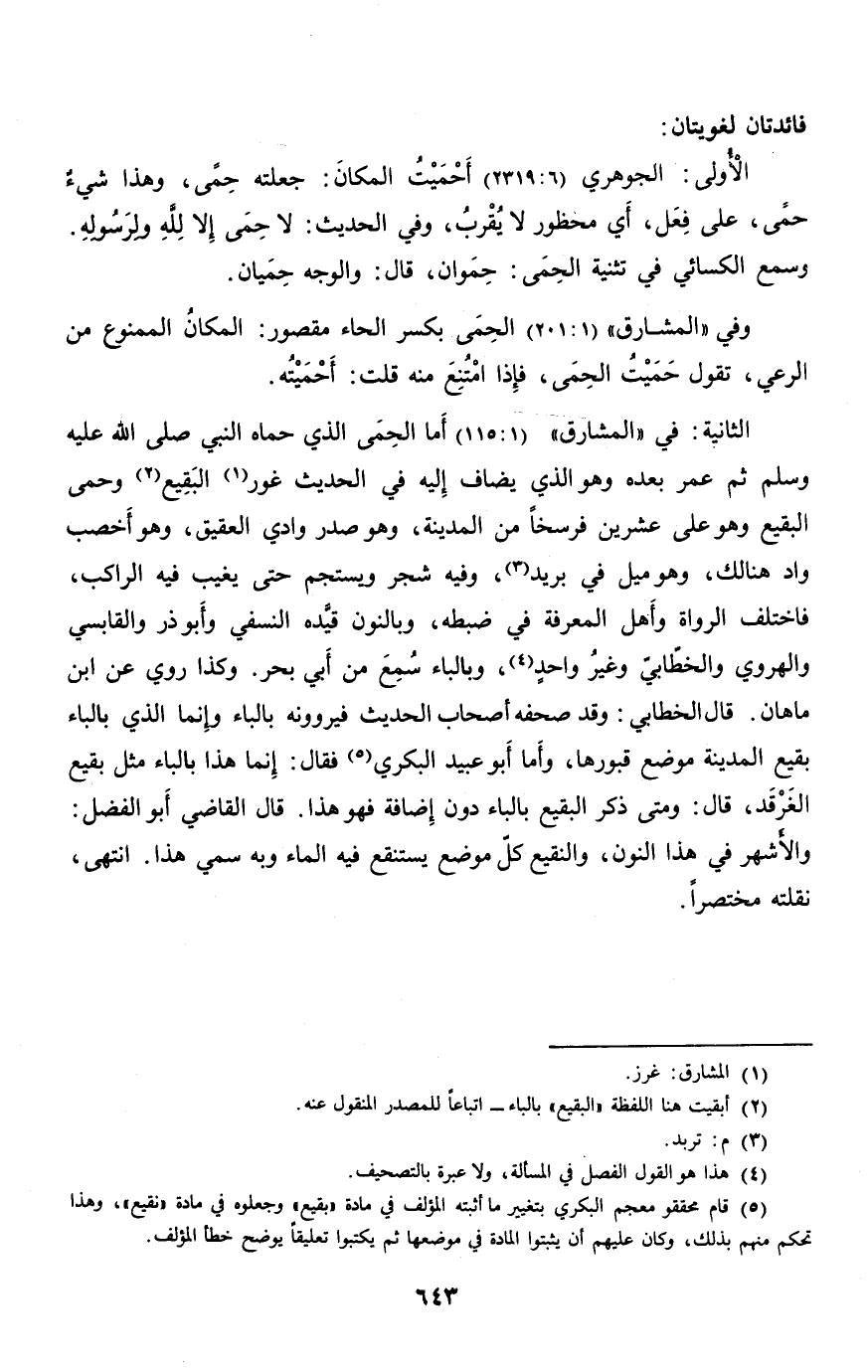 (5) قام محققو معجم البكري بتغيير ما أثبته المؤلف في مادة «بقيع» وجعلوه في مادة «نقيع» ، وهذا تحكم منهم بذلك، وكان عليهم أن يثبتوا المادة في موضعها ثم يكتبوا تعليقا يوضح خطأ المؤلف.