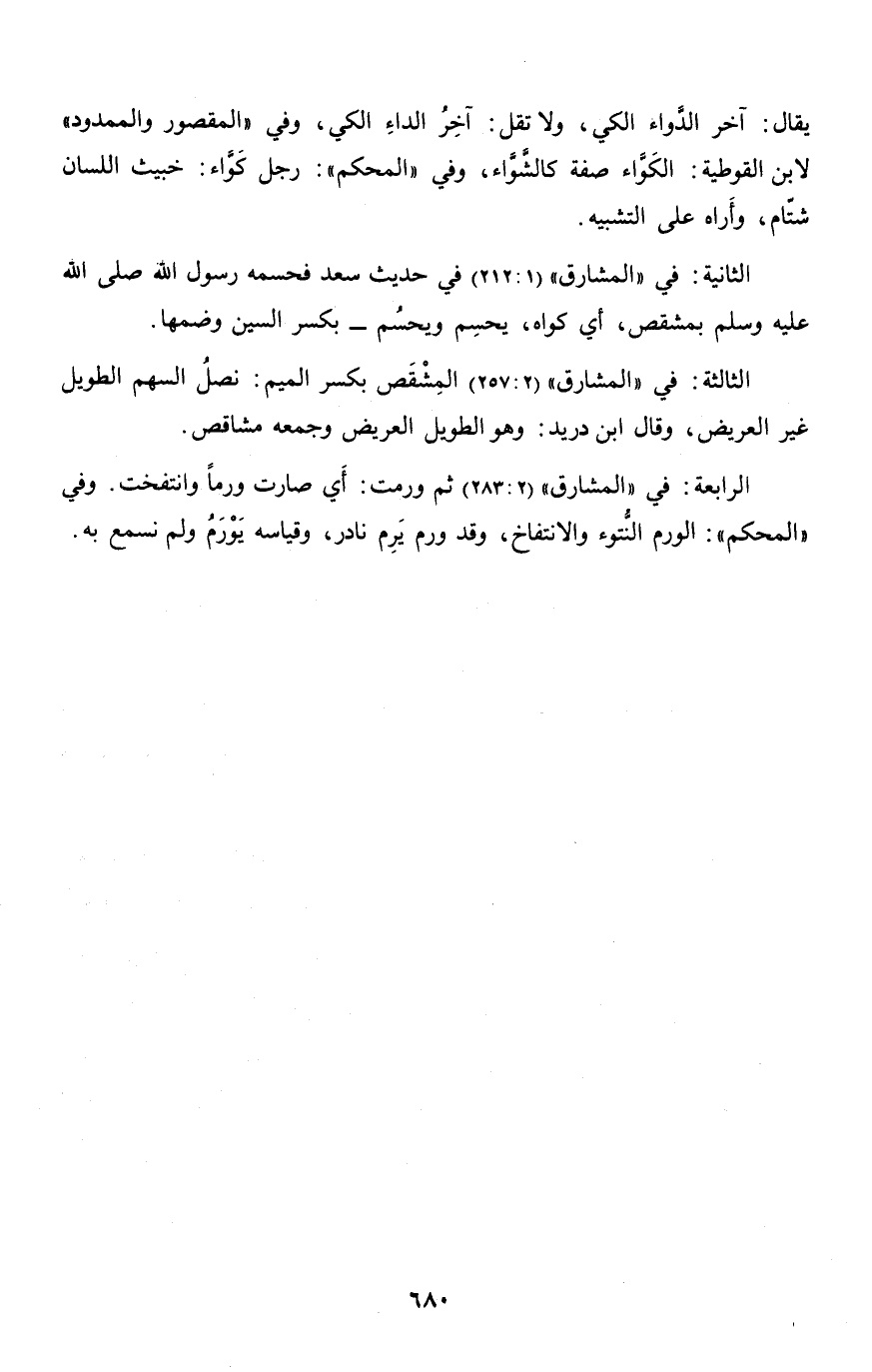 الثانية: في «المشارق» (1: 212) في حديث سعد فحسمه رسول الله صلّى الله عليه وسلم بمشقص، أي كواه، يحسم ويحسم- بكسر السين وضمها.
