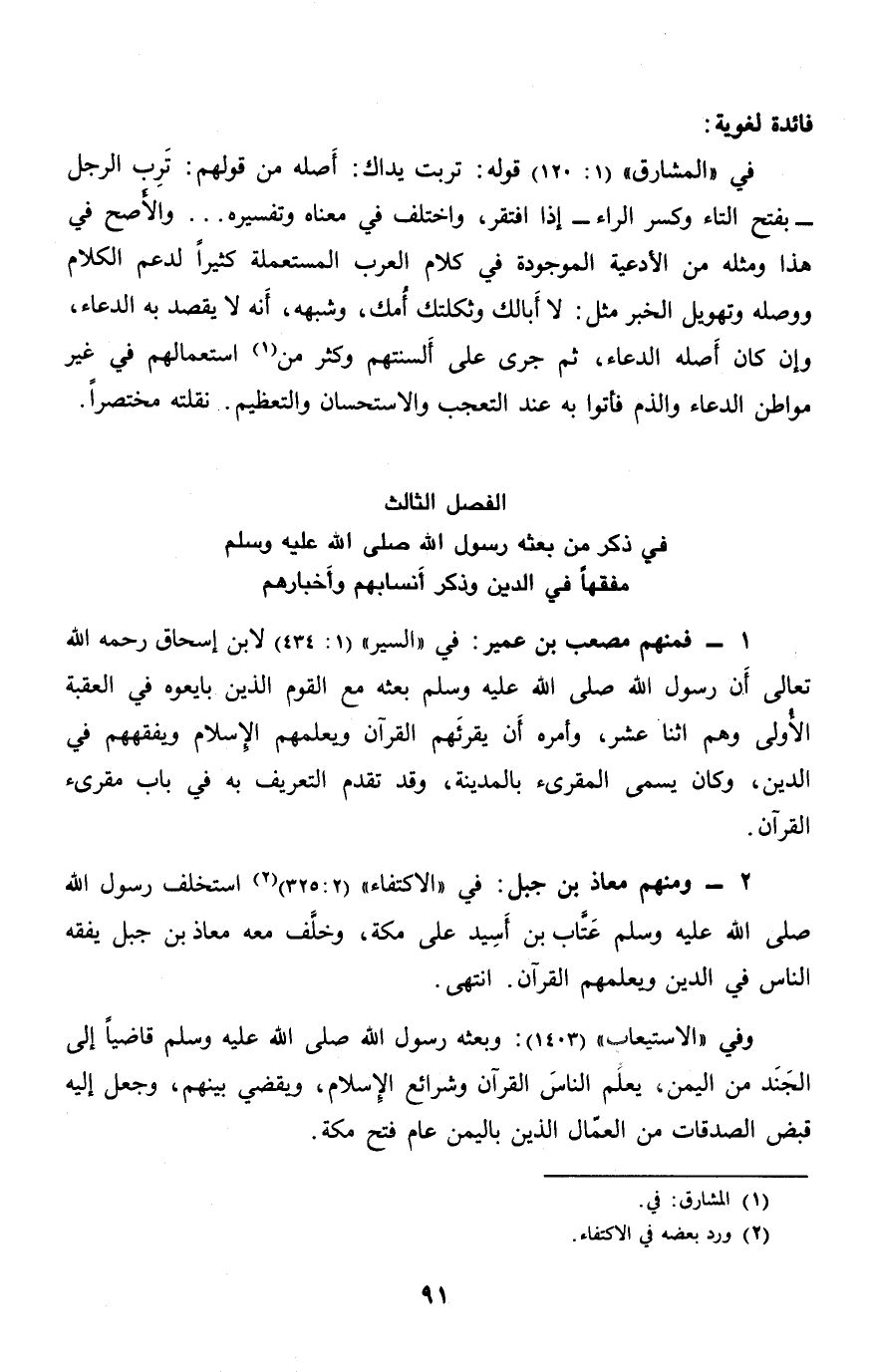 الفصل الثالث في ذكر من بعثه رسول الله صلّى الله عليه وسلم مفقها في الدين وذكر أنسابهم وأخبارهم