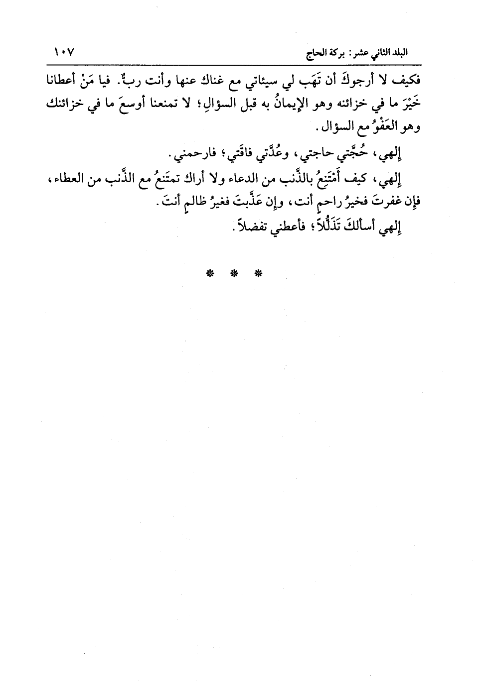 فَكيف لَا أرجوك أَن تهب لي سيئاتي مَعَ غناك عَنْهَا وَأَنت رب فيا من أَعْطَانَا خير مَا فِي خزائنه وَهُوَ الْإِيمَان بِهِ قبل السُّؤَال لَا تَمْنَعنَا أوسع مَا فِي خزائنك وَهُوَ الْعَفو مَعَ السُّؤَال إلهي حجتي حَاجَتي وعدتي فَاقَتِي فارحمني إلهي كَيْفَ أمتنع بالذنب من الدُّعَاء وَلَا أَرَاك تمْتَنع مَعَ الذَّنب من الْعَطاء فَإِن غفرت فَخير رَاحِم أَنْتَ وَإِن عذبت فَغير ظَالِم أَنْتَ إلهي أَسأَلك تذللا فَأعْطِنِي تفضلا