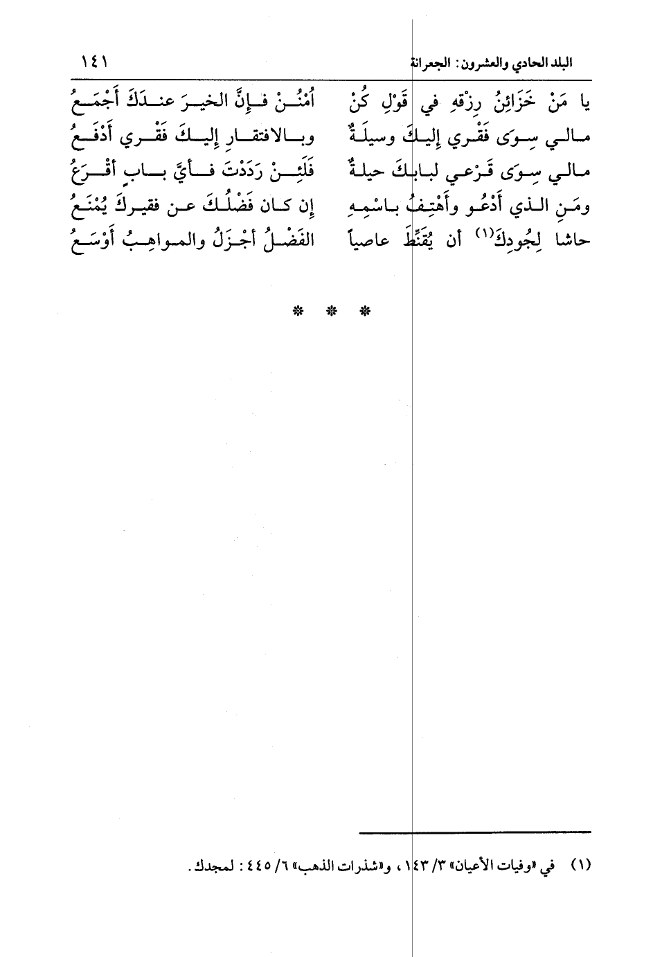 مَالِي سوى فقري إِلَيْك وَسِيلَة