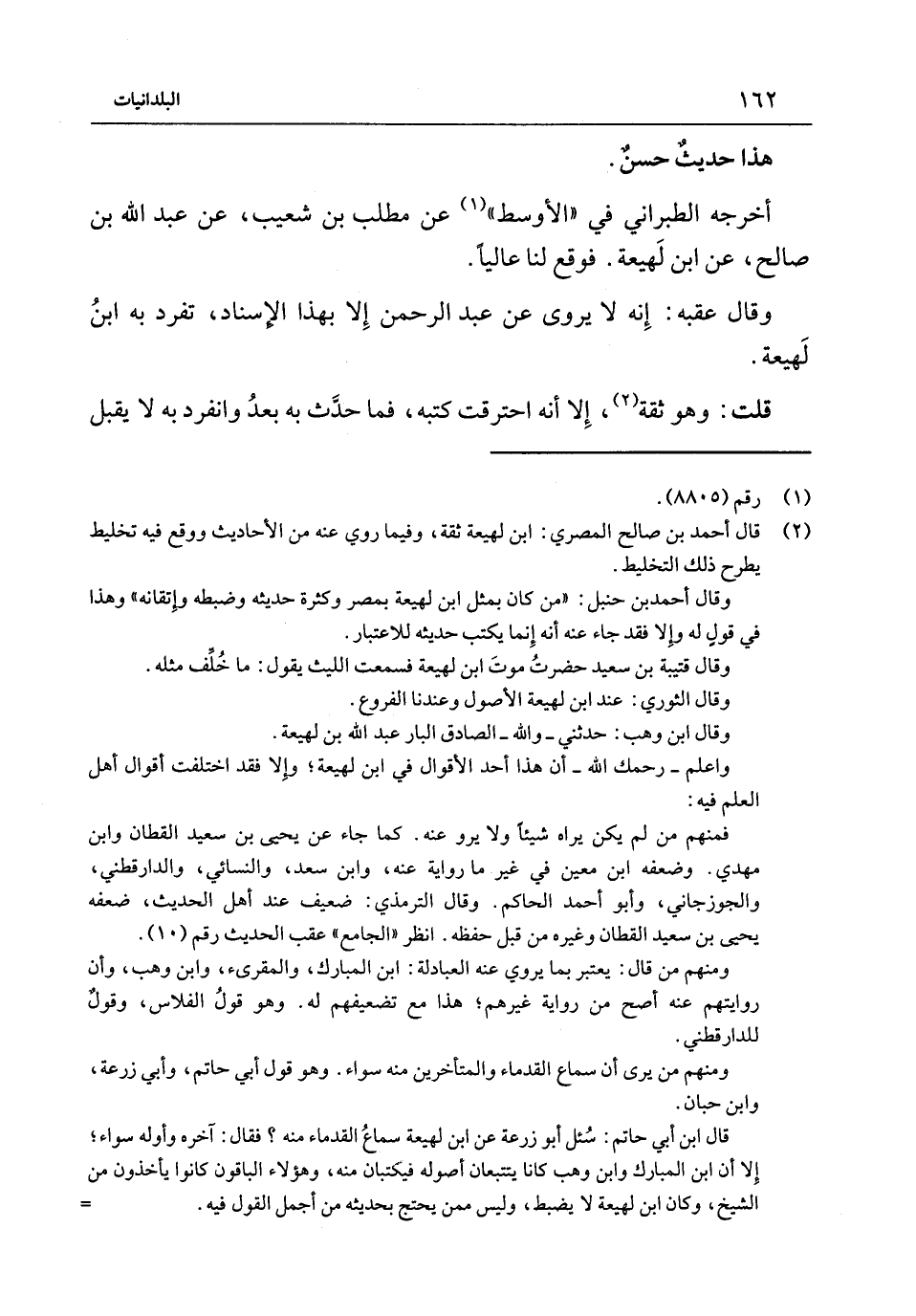 هَذَا حَدِيثٌ حَسَنٌ أَخْرَجَهُ الطَّبَرَانِيُّ فِي الأَوْسَطِ عَنْ مُطَّلِبِ بْنِ شُعَيْبٍ عَنْ عَبْدِ اللَّهِ بْنِ صَالِحٍ عَنِ ابْنِ لَهِيعَةَ فَوَقَعَ لَنَا عَالِيًا وَقَالَ عقبَة إِنَّه لَا يرْوى عَنْ عَبْد الرَّحْمَنِ إِلَّا بِهَذَا الْإِسْنَاد تفرد بِهِ ابْن لَهِيعَة قُلْت وَهُوَ ثِقَة إِلَّا أَنه احترقت كتبه فَمَا حدث بِهِ بَعْد وَانْفَرَدَ بِهِ لَا يقبل