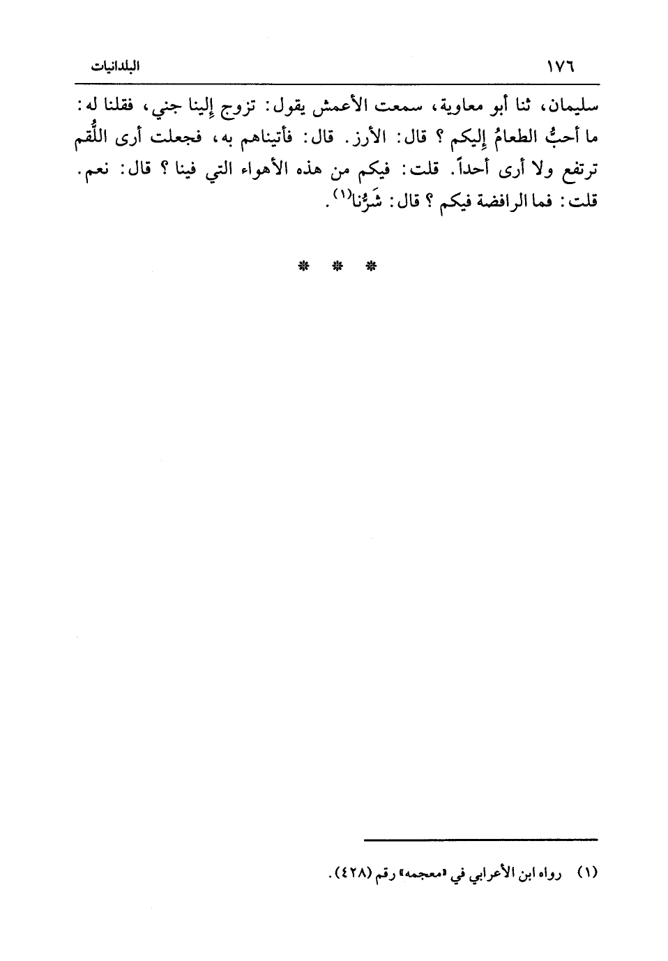 سُلَيْمَان ثَنَا أَبُو مُعَاوِيَة سَمِعت الأَعْمَش يَقُول تزوج إِلَيْنَا جني فَقُلْنَا لَهُ مَا أحب الطَّعَام إِلَيْكُم قَالَ الْأرز قَالَ فأتيناهم بِهِ فَجعلت أرى اللقم ترْتَفع وَلَا أرى أحدا قُلْت فِيكُم من هَذِه الْأَهْوَاء الَّتِي فِينَا قَالَ نعم قُلْت فَمَا الرافضة فِيكُم قَالَ شَرنَا