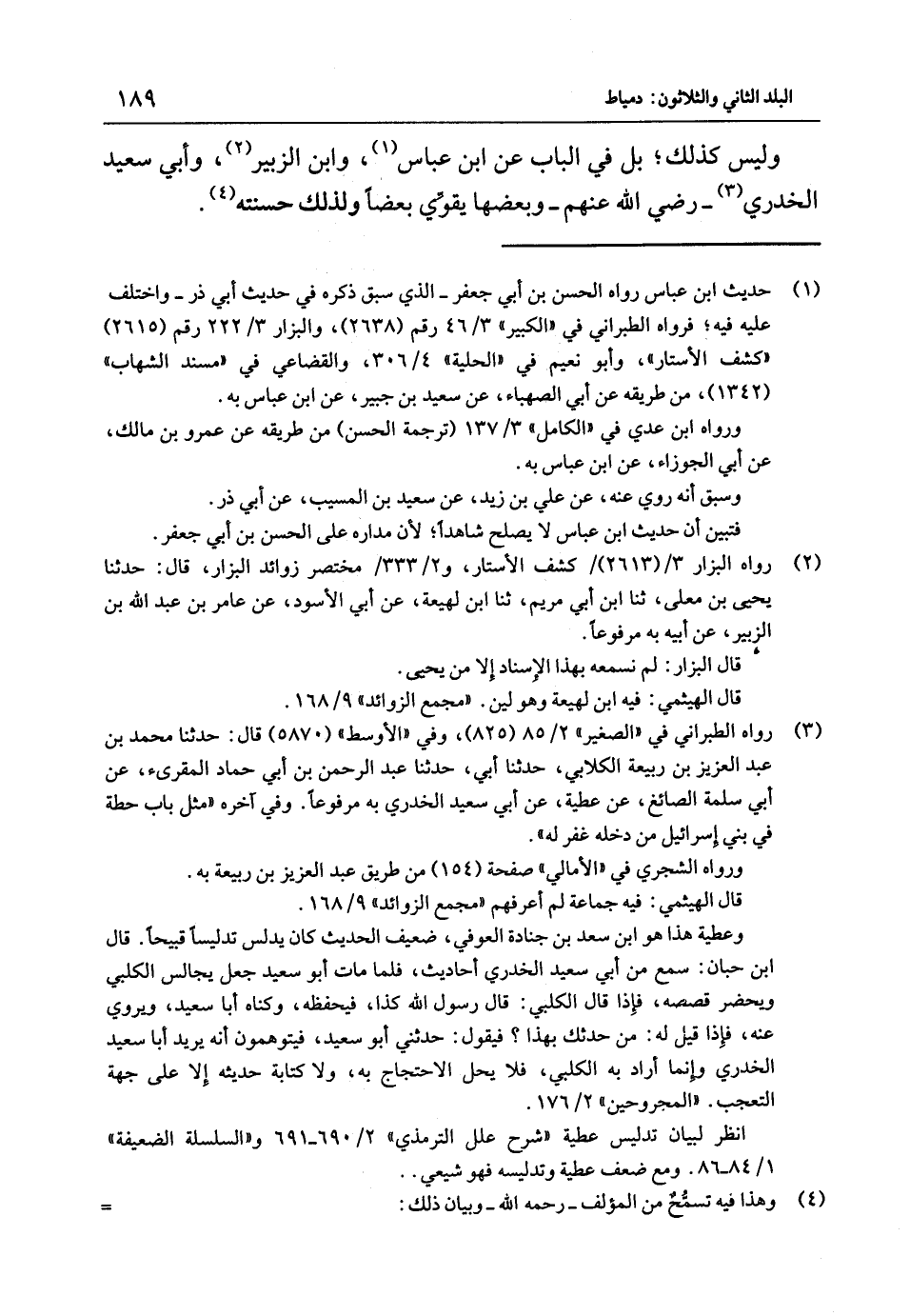 وَلَيْسَ كَذَلِك بَل فِي الْبَاب عَنِ ابْن عَبَّاس وَابْن الزُّبَيْر وَأبي سَعِيد الْخُدْرِيّ - رَضِيَ اللَّهُ عَنْهُم - وَبَعضهَا يُقَوي بَعْضًا وَلذَلِك حسنته