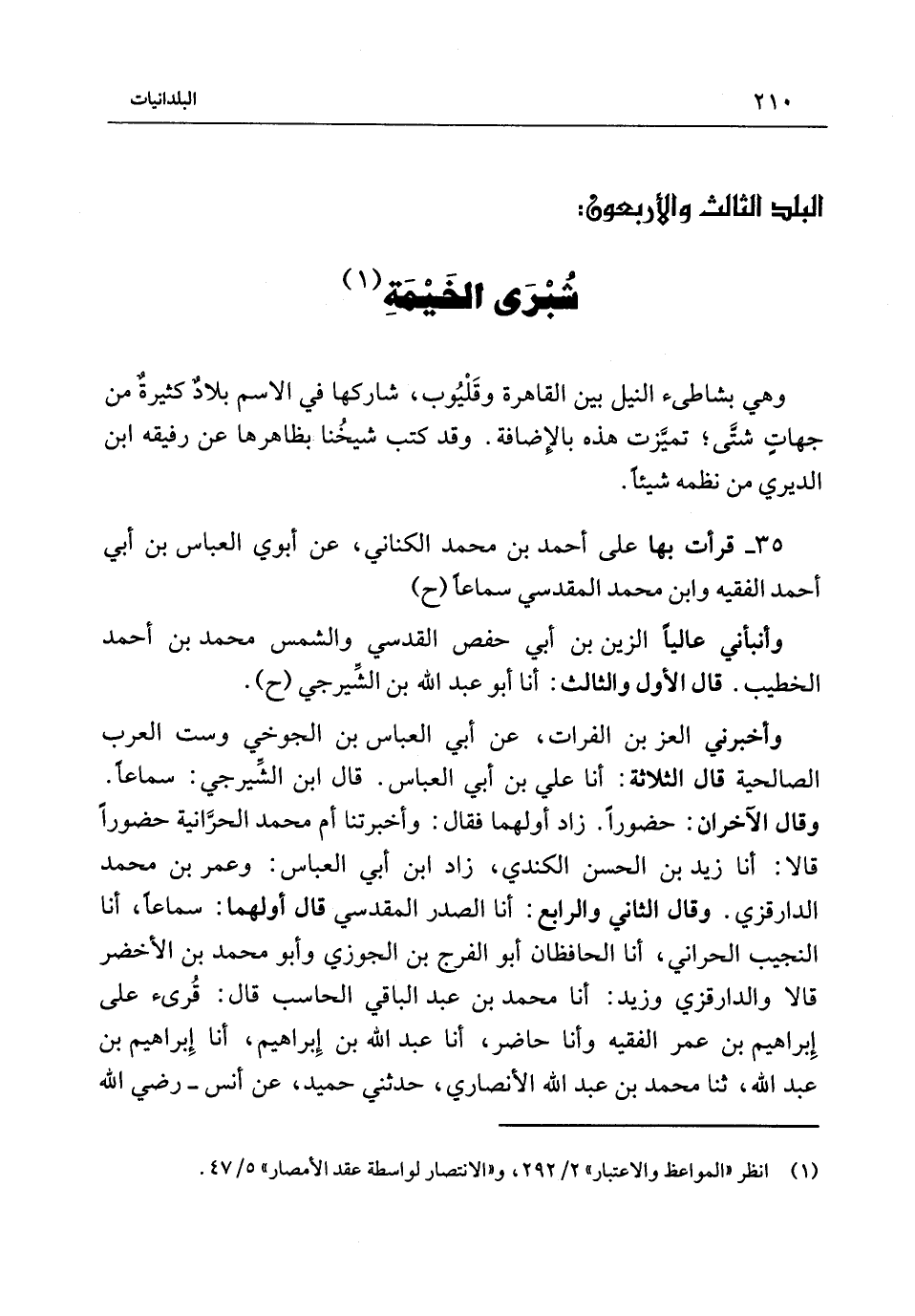 35 - قَرَأْتُ بِهَا عَلَى أَحْمَدَ بْنِ مُحَمَّدِ الْكِنَانِي عَن أَبَوي الْعَبَّاس بن أَبِي أَحْمَدَ الْفَقِيهِ وَابْنِ مُحَمَّدٍ الْمَقْدِسِيِّ سَمَاعًا (ح)