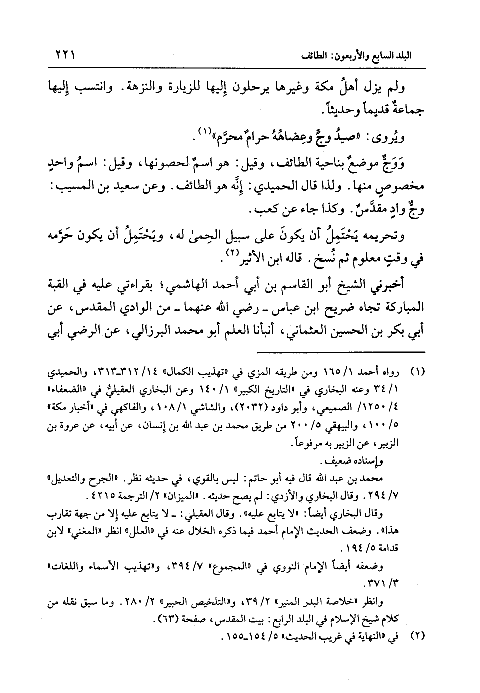 وَلَمْ يزل أهل مَكَّة وَغَيرهَا يرحلون إِلَيْهَا للزيارة والنزهة وانتسب إِلَيْهَا جَمَاعَة قَدِيما وحَدِيثا ويروى صيد وَج وعضاهة حرَام محرم وَوَج مَوضِع بِنَاحِيَة الطَّائِف وَقيل هُوَ اسْم لحصونها وَقيل اسْم وَاحِد مَخْصُوص مِنْهَا وَلذَا قَالَ الْحميدِي إِنَّه هُوَ الطَّائِف وَعَن سَعِيد بْن الْمُسَيِّب وَج وَاد مقدس وَكَذَا جَاءَ عَنْ كَعْب وتحريمه يحْتَمل أَن يَكُون عَلَى سَبِيل الْحمى لَهُ وَيحْتَمل أَن يَكُون حرمه فِي وَقت مَعْلُوم ثُمَّ نسخ قَالَه ابْن الْأَثِير