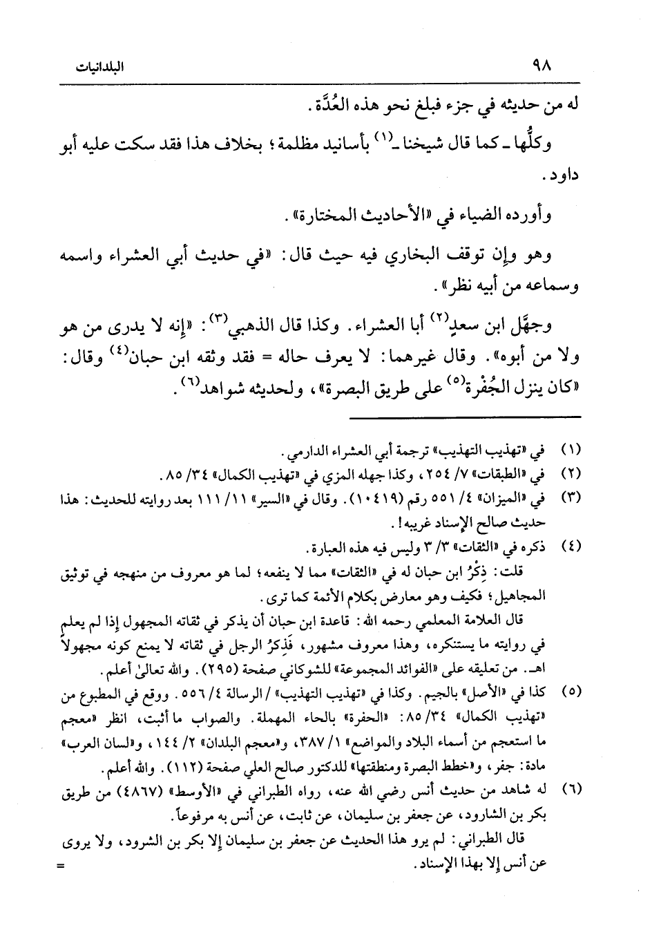 لَهُ من حَدِيثه فِي جُزْء فَبلغ نَحْو هَذِه الْعدة وَكلهَا - كَمَا قَالَ شَيخنَا - بأسانيد مظْلمَة بِخِلَاف هَذَا فَقَدْ سكت عَلَيْهِ أَبُو دَاوُد وَأوردهُ الضياء فِي الْأَحَادِيث المختارة وَهُوَ وَإِن توقف الْبُخَارِي فِيهِ حَيْثُ قَالَ فِي حَدِيث أَبِي العشراء واسْمه وسماعه من أَبِيهِ نظر وَجَهل ابْن سَعْد أَبَا العشراء وَكَذَا قَالَ الذَّهَبِيّ إِنَّه لَا يدْرِي من هُوَ وَلَا من أَبوهُ وَقَالَ غَيرهمَا لَا يعرف حَاله فَقَدْ وَثَّقَهُ ابْن حبَان وَقَالَ كَانَ ينزل الجفرة عَلَى طَرِيق الْبَصْرَة ولحَدِيثه شَوَاهِد