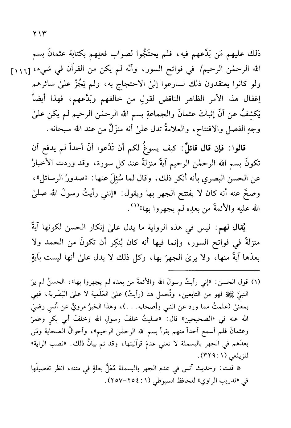 يَكشِفُ عن أن إثباتَ عثمانَ والجماعةِ بِسْمِ اللَّهِ الرَّحْمَنِ الرَّحِيمِ لم يكن على