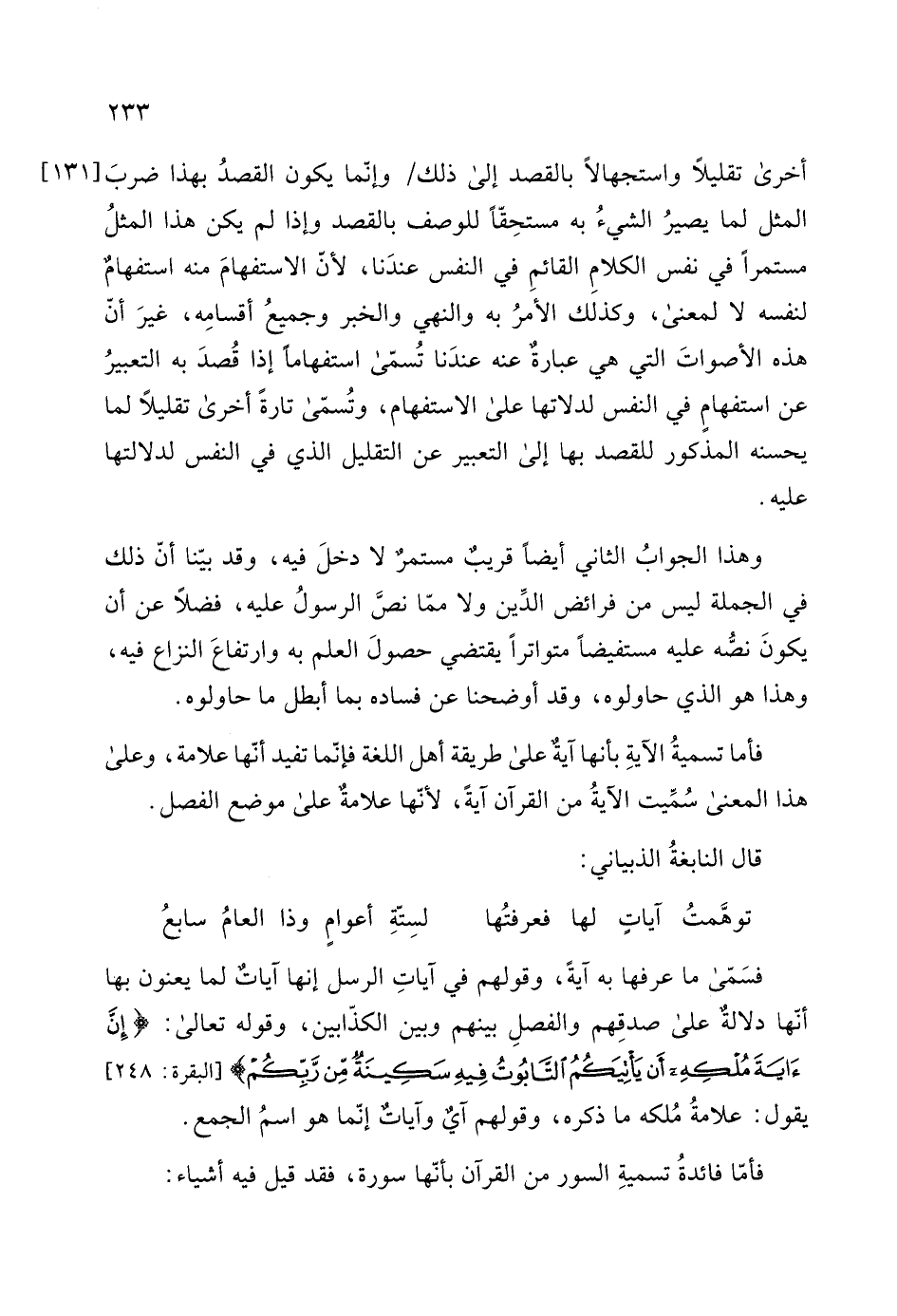 فأما تسميةُ الآية ِ بأنها آيةٌ على طريقة أهل اللغة فإنّما تفيد أنّها علامة، وعلى