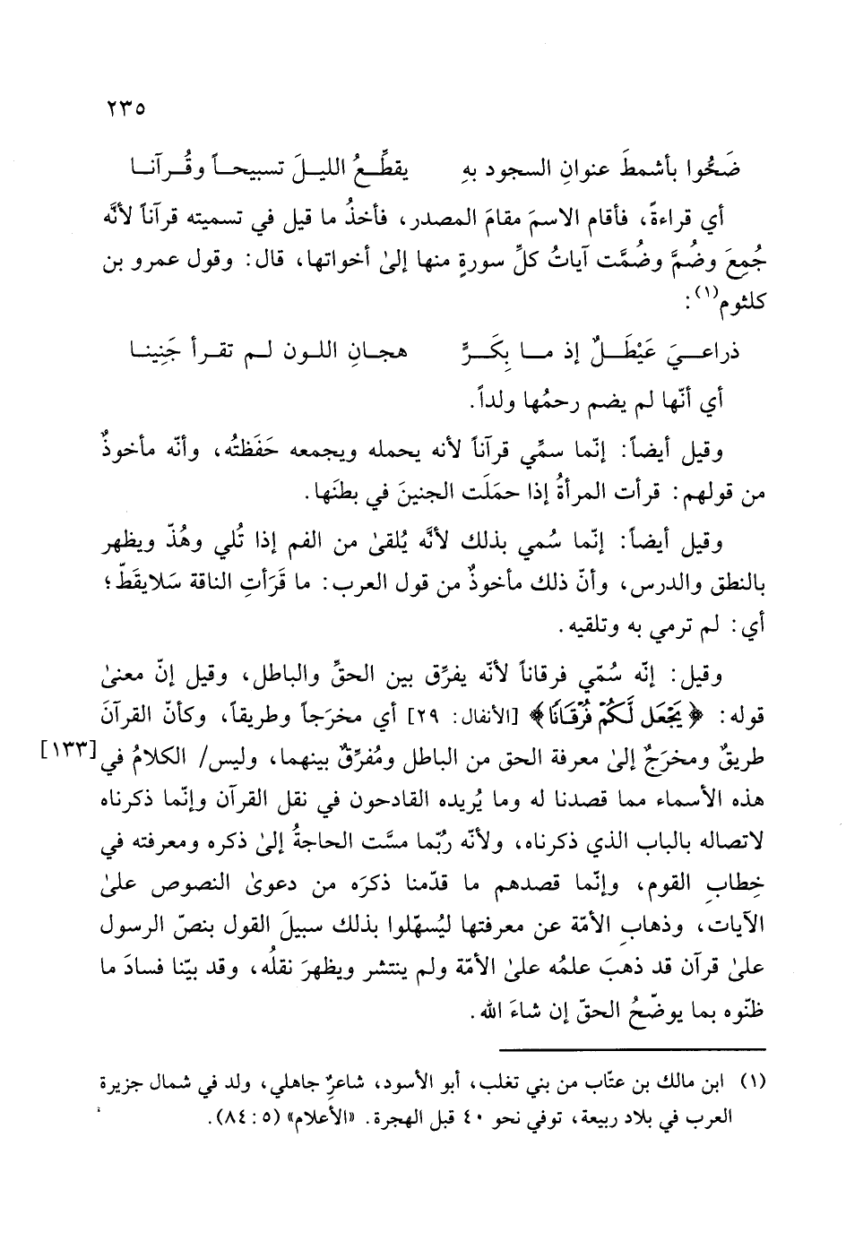 على قرآن قد ذهبَ علمُه على الأمّة ولم ينتشر ويظهرَ نقلُه، وقد بيّنا فسادَ ما ظنّوه بما يوضّحُ الحقّ إن شاءَ الله.