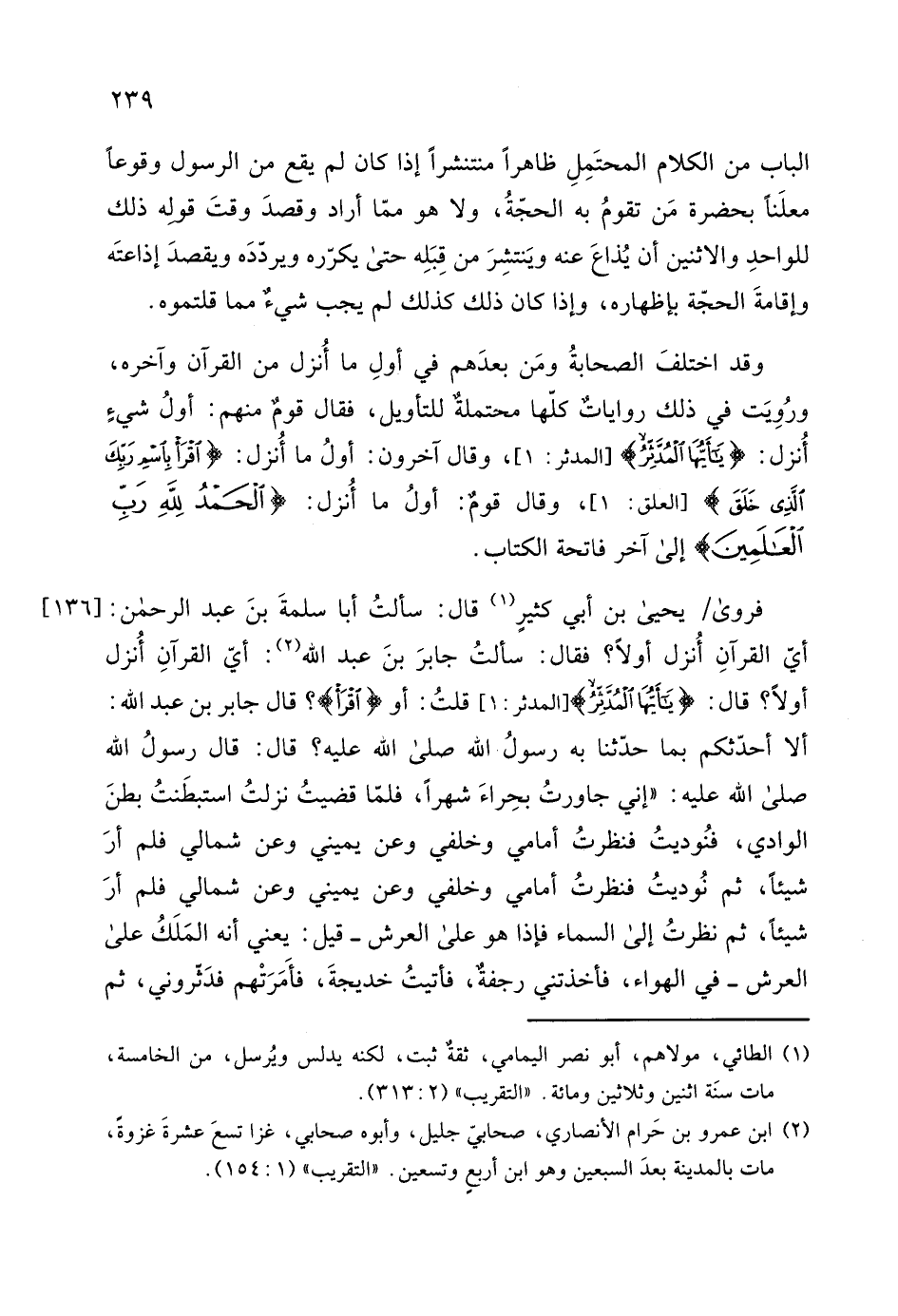 وقد اختلفَ الصحابةُ ومَن بعدَهم في أولِ ما أُنزل من القرآن وآخره.