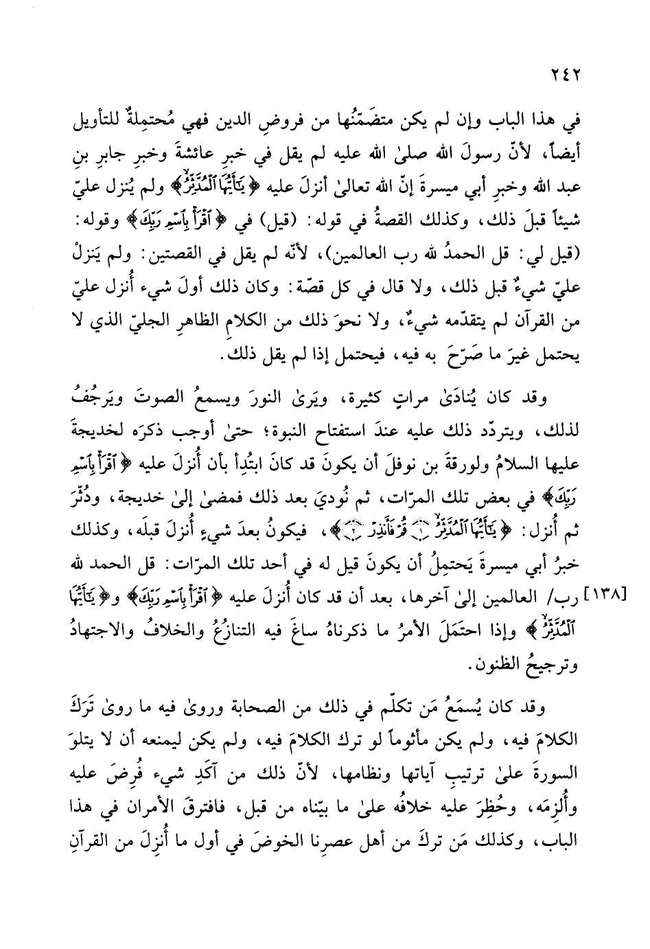 الباب، وكذلك مَن تركَ من أهل عصرِنا الخوضَ في أول ما أُنزِلَ من القرآنِ