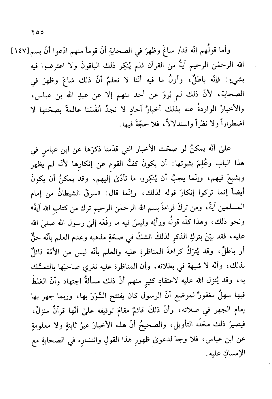 وأما قولُهم إنّه قد ساغَ وظهرَ في الصحابةِ أنّ قوماً منهم ادعوا أنّ بسم
