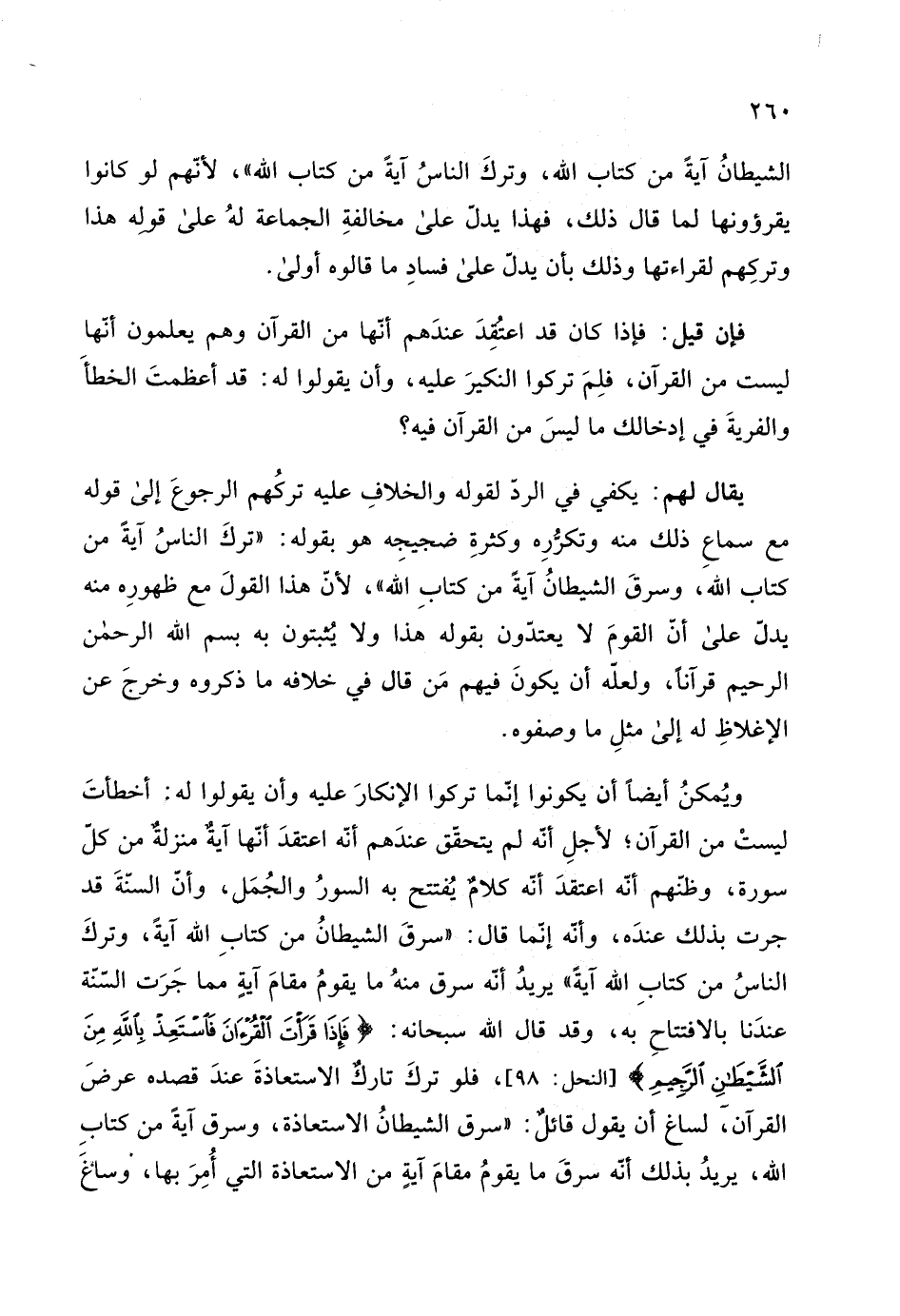 كتاب الله، وسرقَ الشيطانُ آيةً من كتابِ الله "، لأنّ هذا القولَ مع ظهورِه منه يدل على أن القومَ لا يعتدّون بقوله هذا ولا يثبتون به بسم الله الرحمن