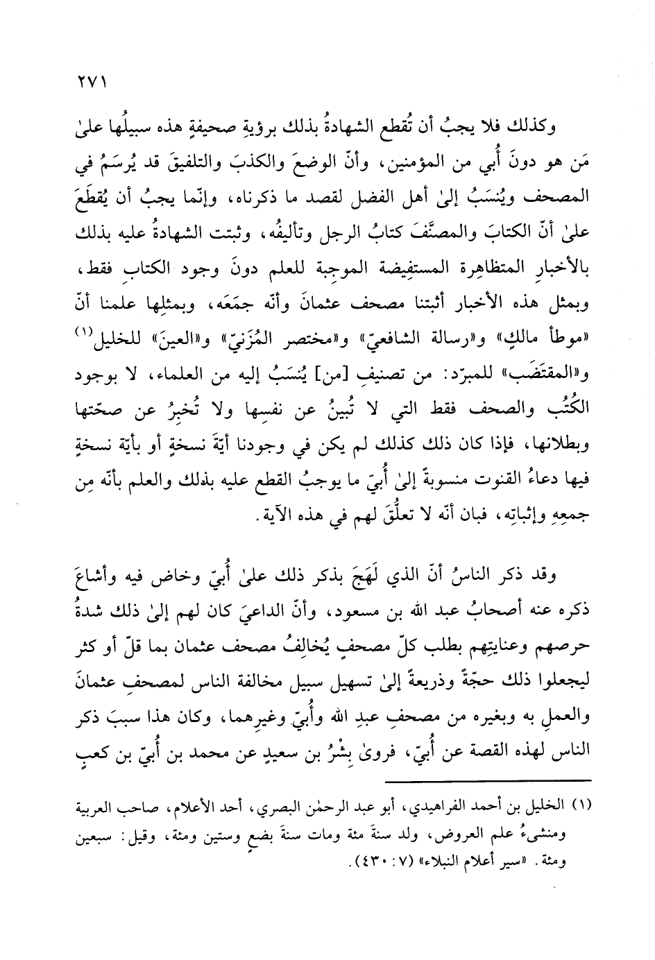 المصحف ويُنسَبُ إلى أهل الفضل لقصد ما ذكرناه، وإنَّما يجبُ أن يُقطَعَ