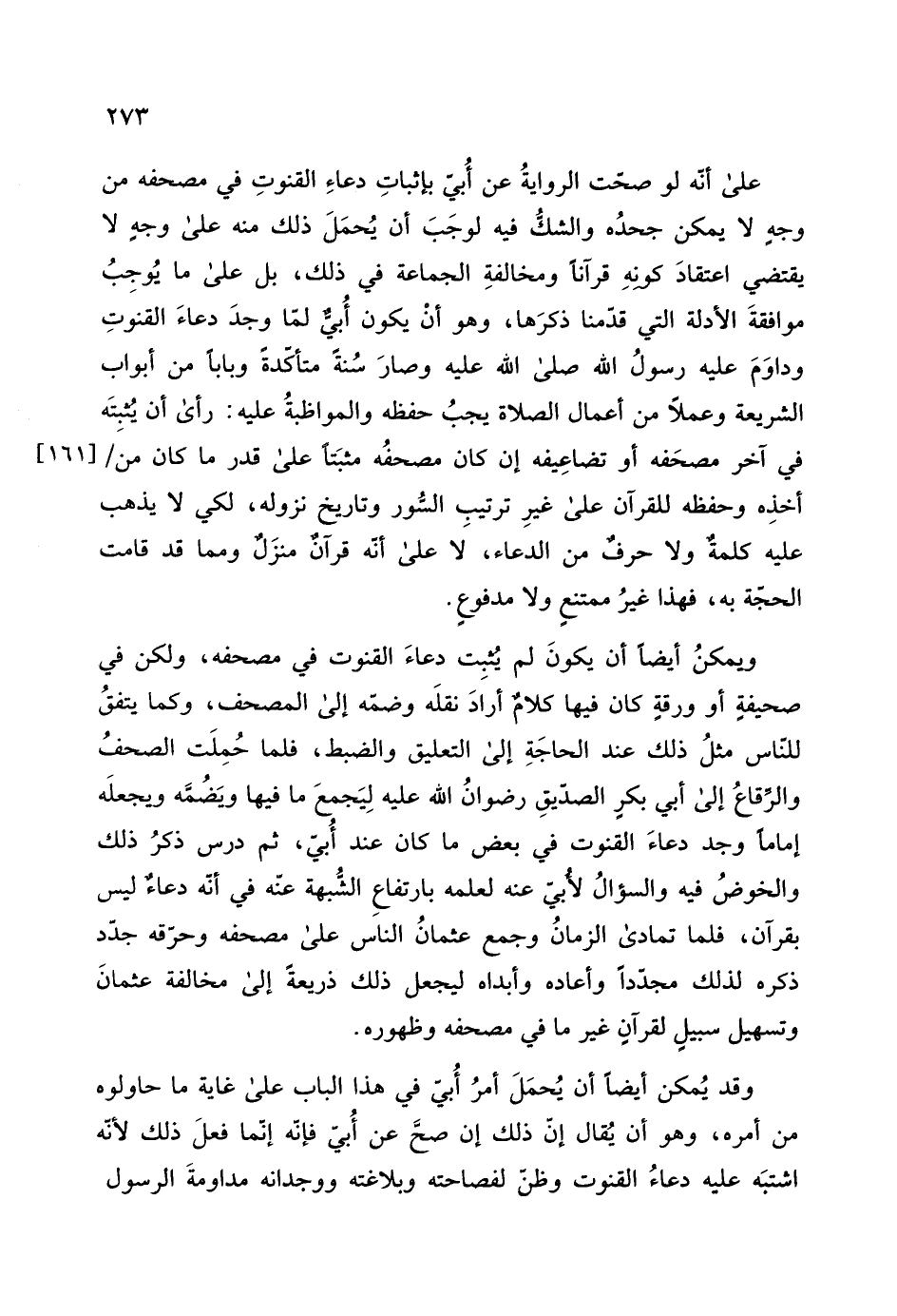 ويمكنُ أيضاً أن يكونَ لم يثبت دعاءَ القنوت في مصحفه، ولكن في