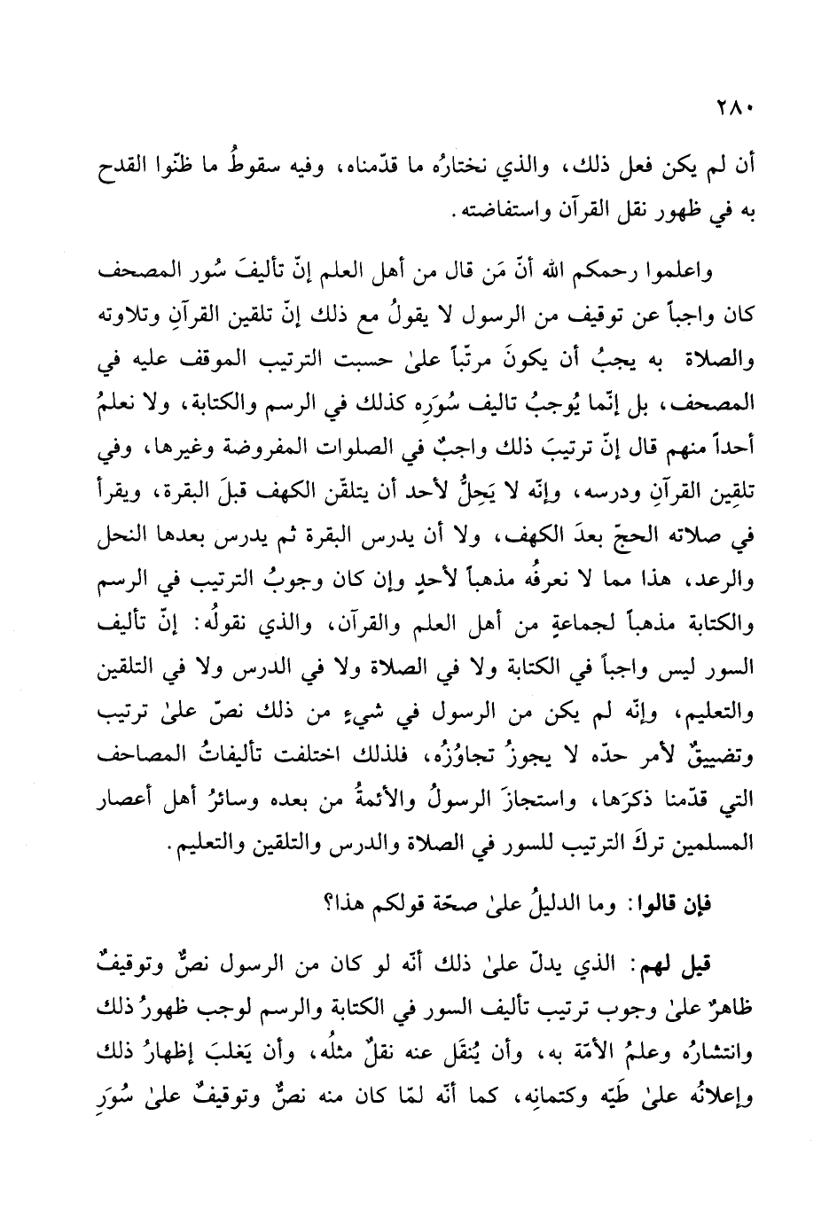واعلموا رحمكم الله أن مَن قال من أهل العلم إنَّ تأليفَ سور المصحف