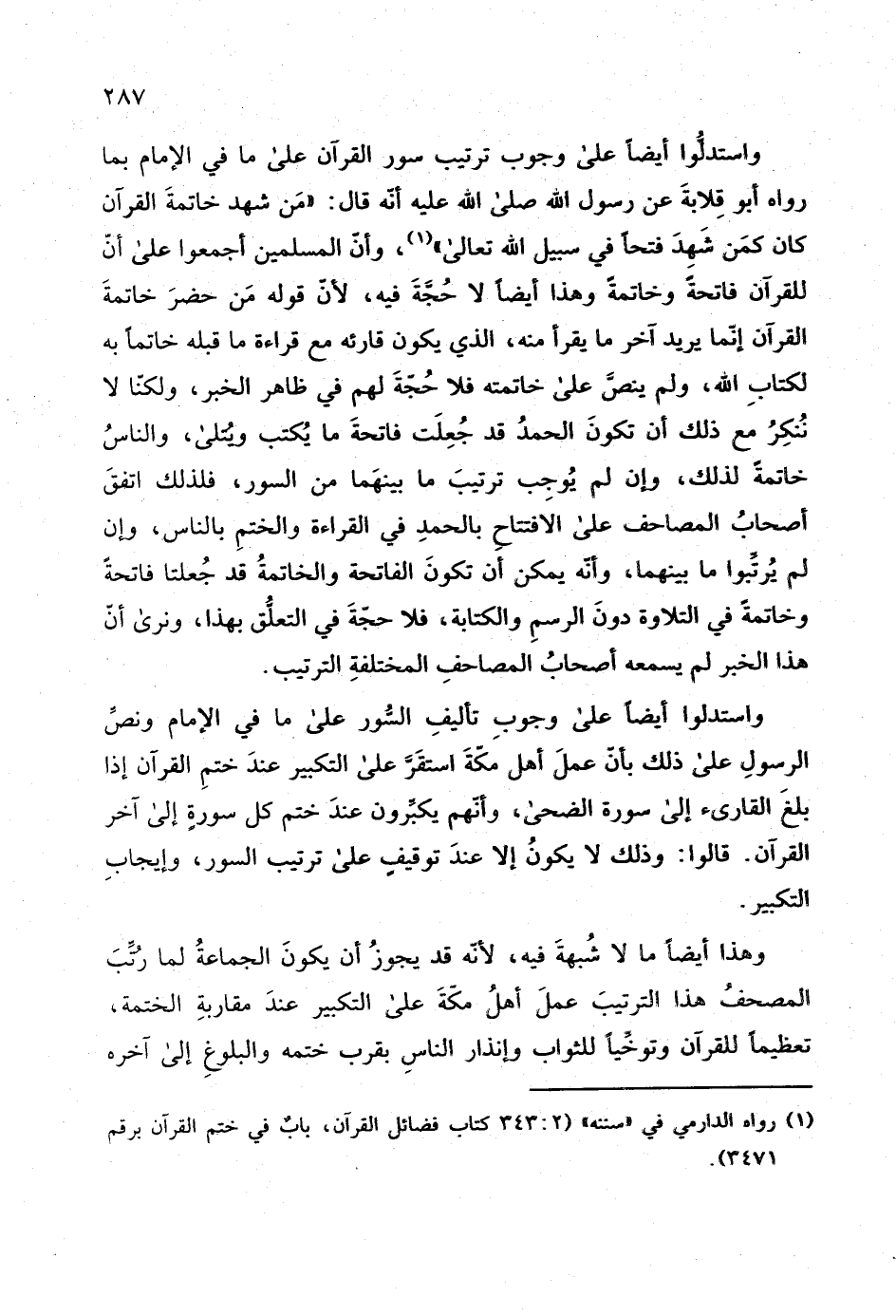 واستدلوا أيضا على وجوب ترتيب سور القرآن على ما في الإمام بما