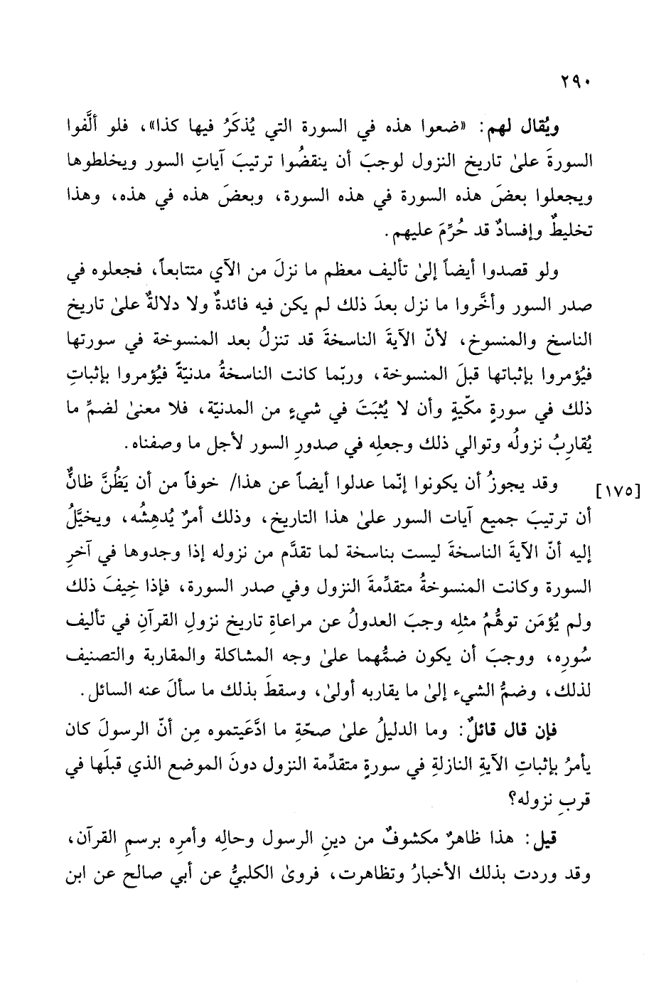 ولم يُؤمَن توهمُ مثلِه وجبَ العدولُ عن مراعاةِ تاريخ نزولِ القرآنِ في تأليف