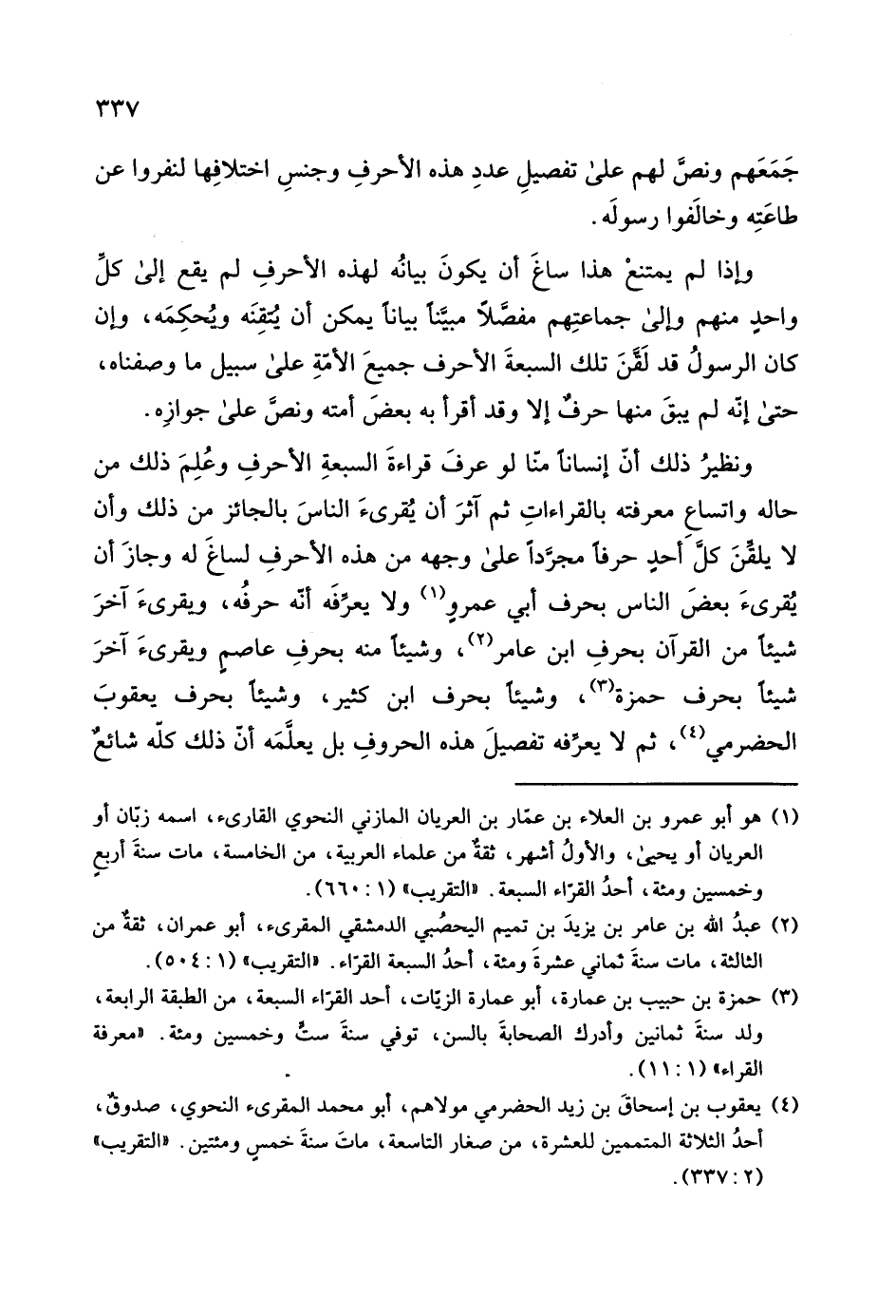 الحضرمي، ثم لا يعرفه تفصيلَ هذه الحروفِ بل يعلمَه أن ذلك كلّه شائعٌ