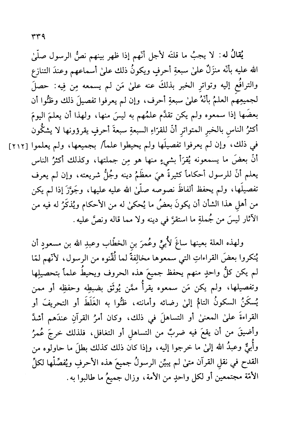 ولهذه العلة بعينها ساغَ لأبيٍّ وعُمرَ بنِ الخطاب وعبدِ الله بن مسعودٍ أن