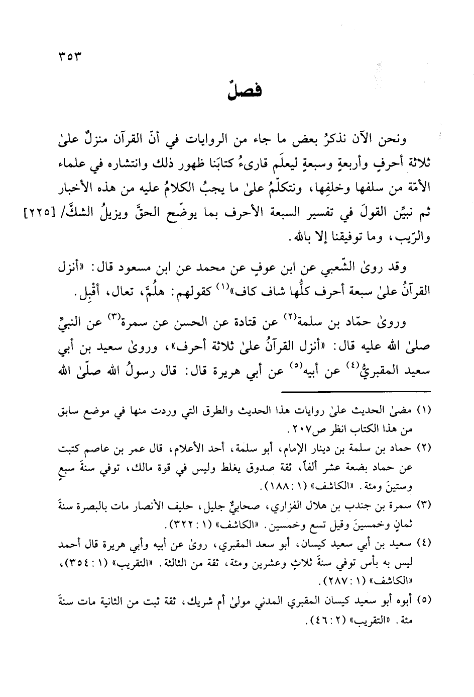 صلى الله عليه قال: "أنزل القرآنُ على ثلاثة أحرف "، وروى سعيد بن أبي