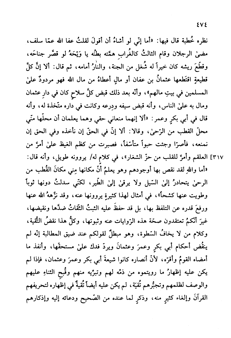 غيرَ أنكمُ تعتقدون صحة هذه الروايات عنه وثبوتها، وكل هذا نقضُ التقية، وكلام من لا يخافُ السطوة، وهو مبطلٌ لقولكم عند ضيق المطالبة إنه لم