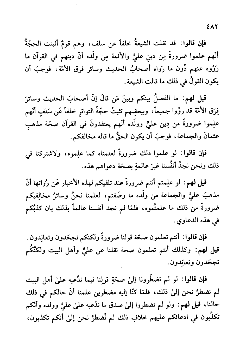 فإن قالوا: قد نقلت الشيعةُ خلفا عن سلف، وهم قوم أثبتت الحجةُ