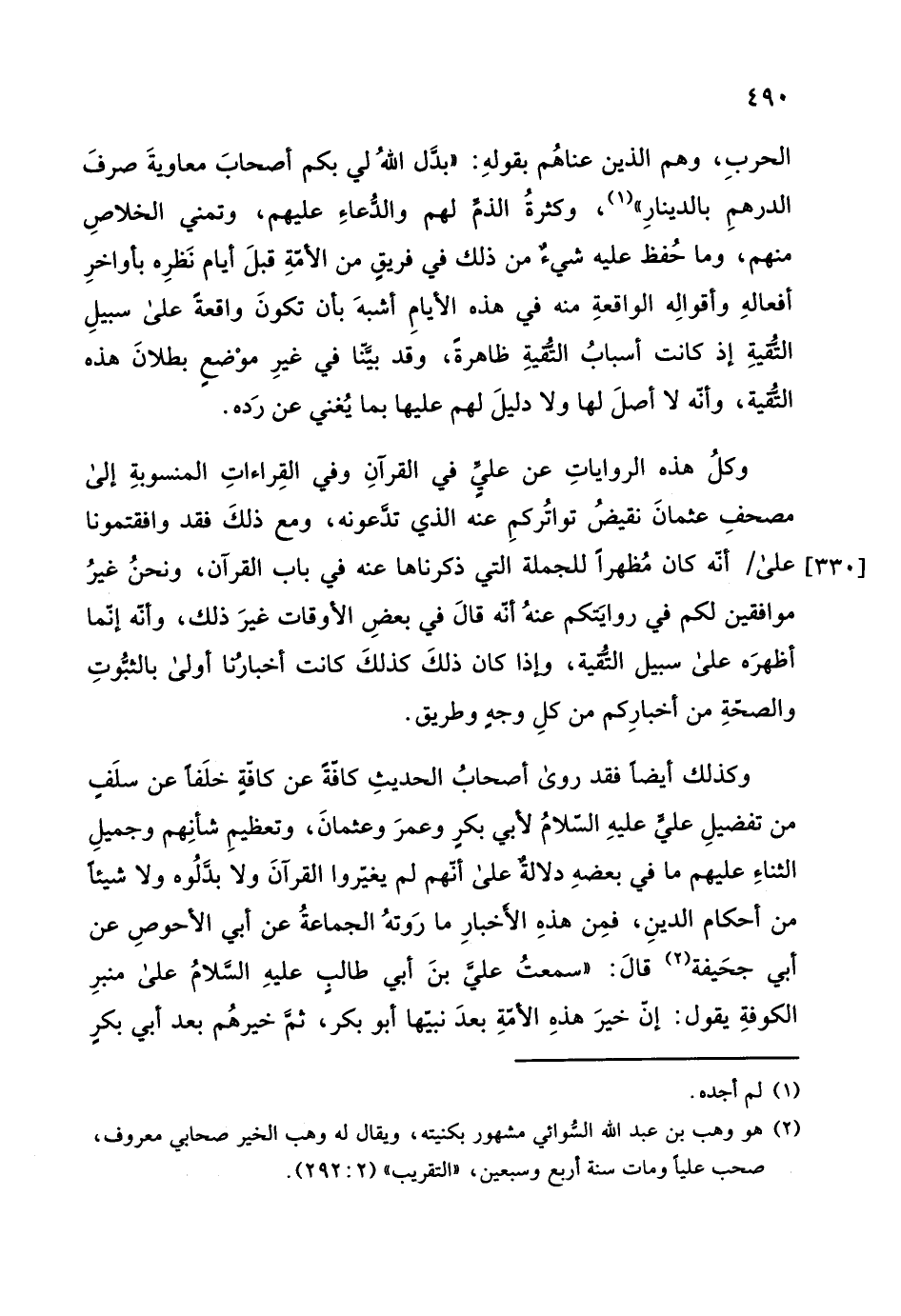 التُقيةِ إذ كانت أسبابُ التُميةِ ظاهرةً، وقد بئتا في غيرِ موْضعٍ بطلانَ هذه