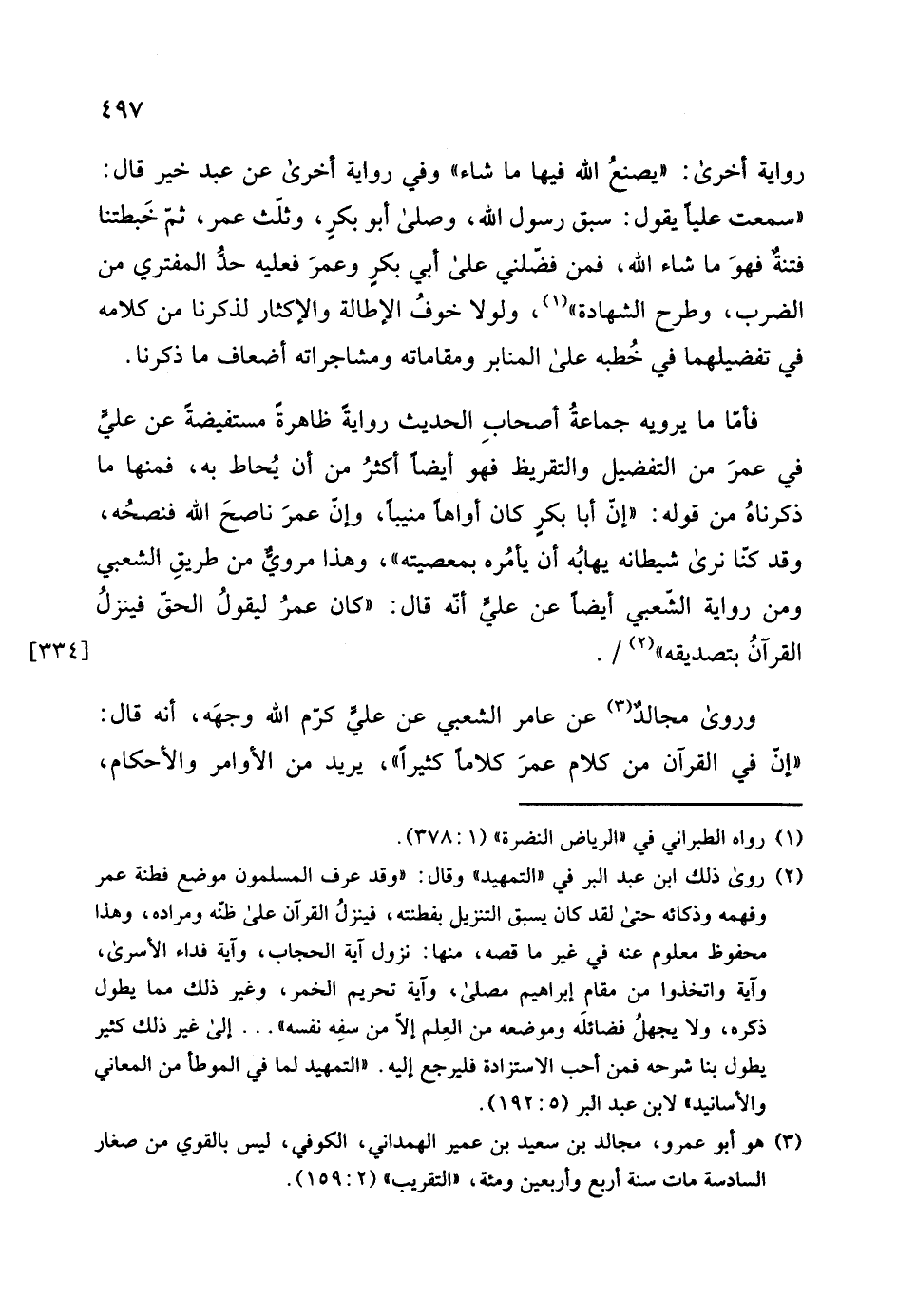 ولولا خوفُ الإطالة والإكثار لذكرنا من كلامه في تفضيلهما في خُطبه على المنابر ومقاماته ومشاجراته أضعاف ما ذكرنا.