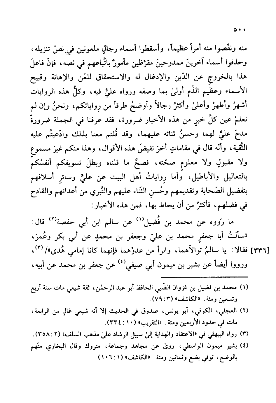 "سألتُ أبا جعفرٍ محمد بن عليّ وجعفر بن محمدٍ عن أبي بكر وعُمرَ.